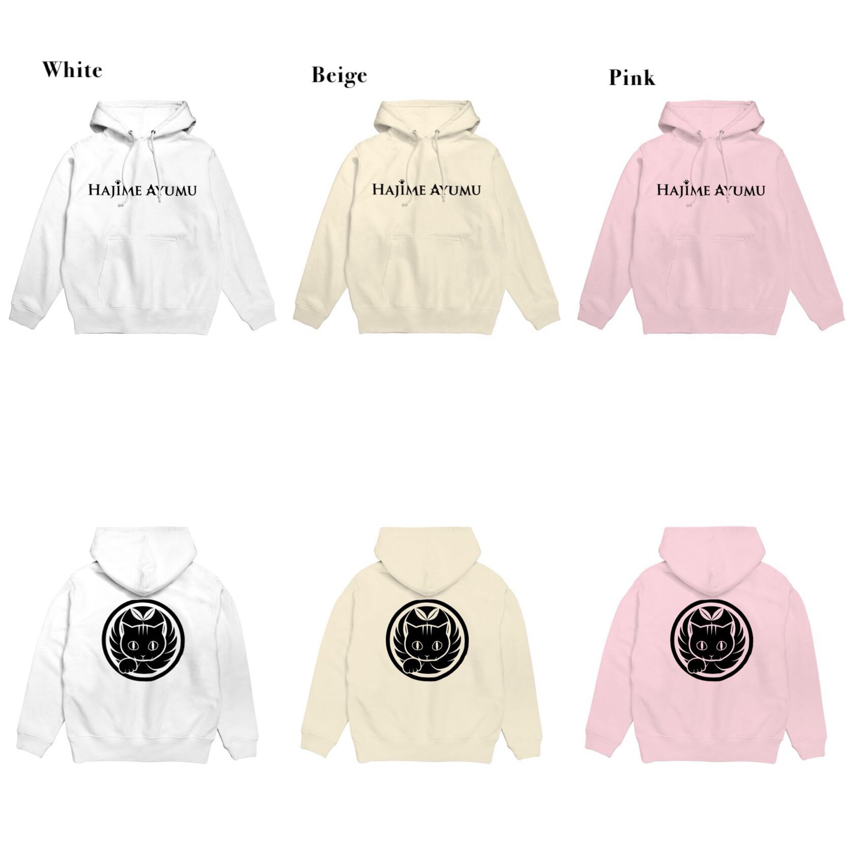 ★HAJIME AYUMU オリジナル 猫家紋ロゴ パーカー S〜3L kids有 カラー選択可 フード ポケット有