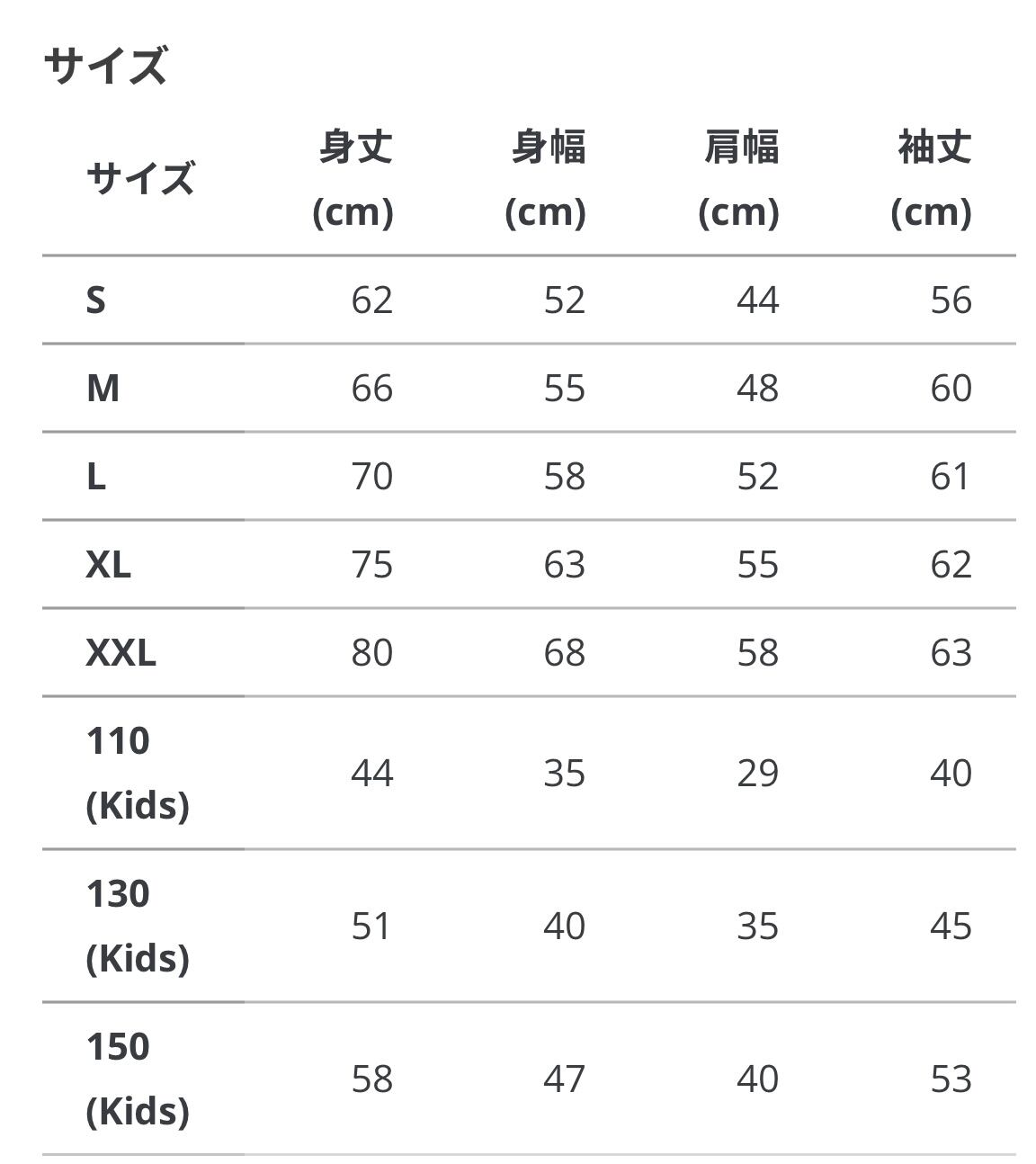 サイズ : S〜3L 、110〜150(Kids)
