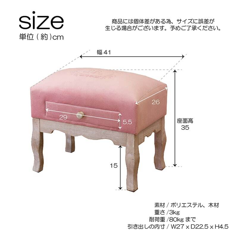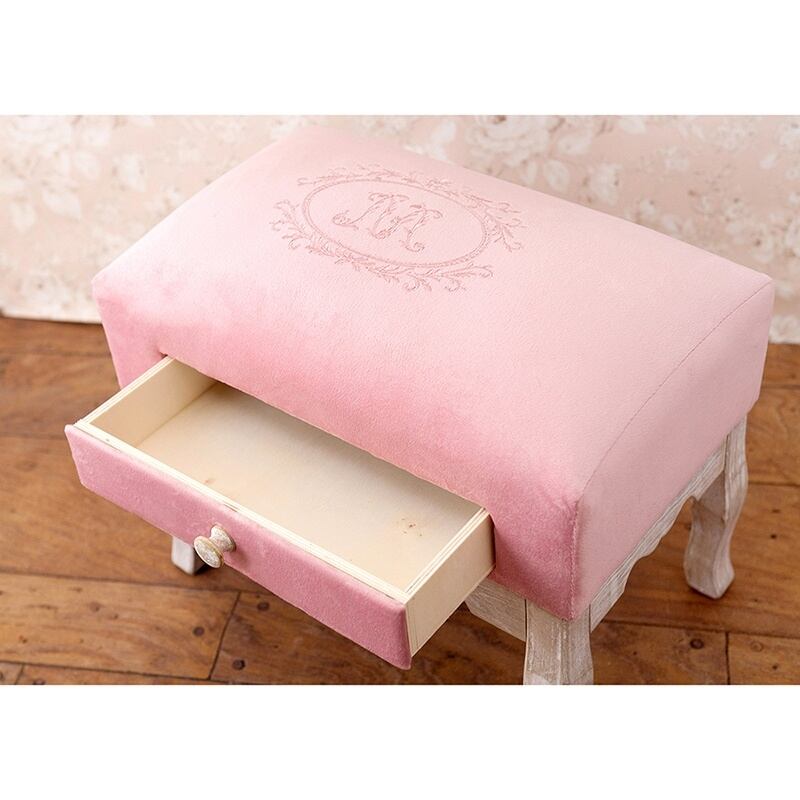 ★ドロワースツール マーヴェラス スツール イス ベルベット アルファベット文字 M 引き出し付 家具 腰掛 インテリア ピンク おしゃれ