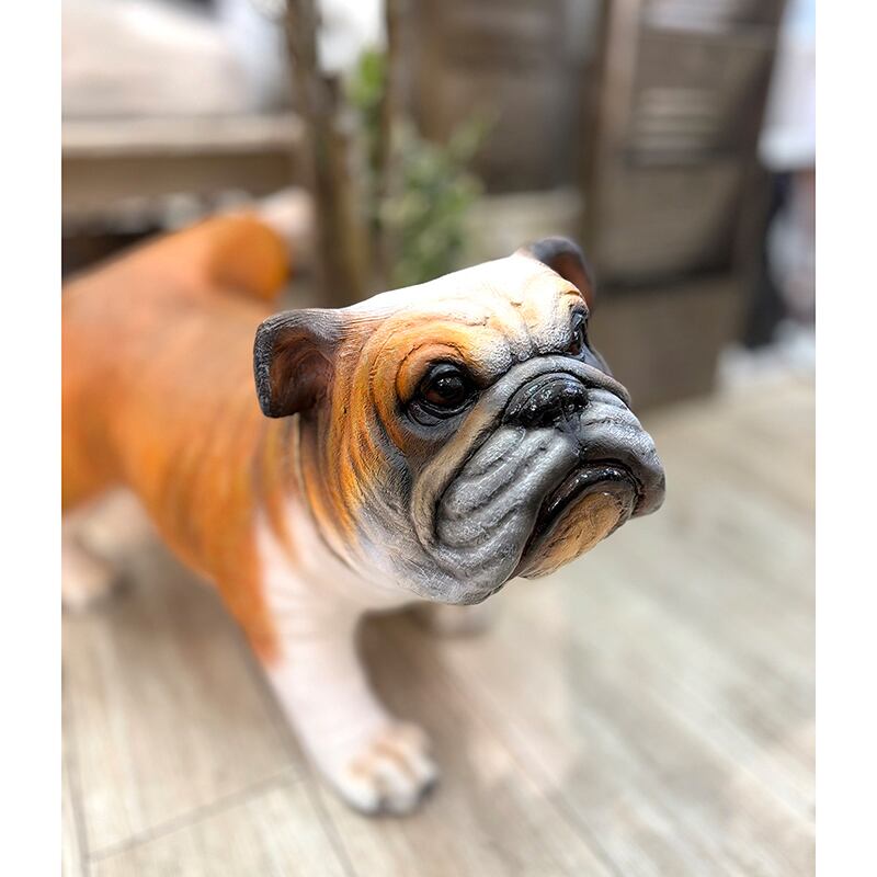 ★樹脂製 ブルドッグ 犬 イヌ リアル フィギュア オブジェ 置物 飾り インテリア 高さ39cm アニマルオブジェ