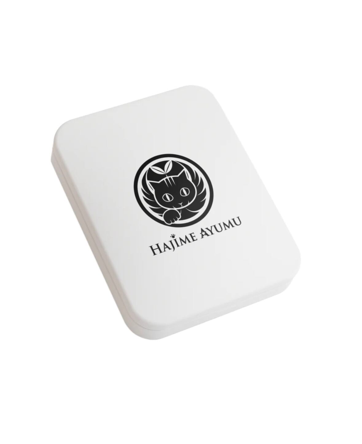 ★オリジナル 家紋 猫 ロゴ フラット缶ケース ホワイト