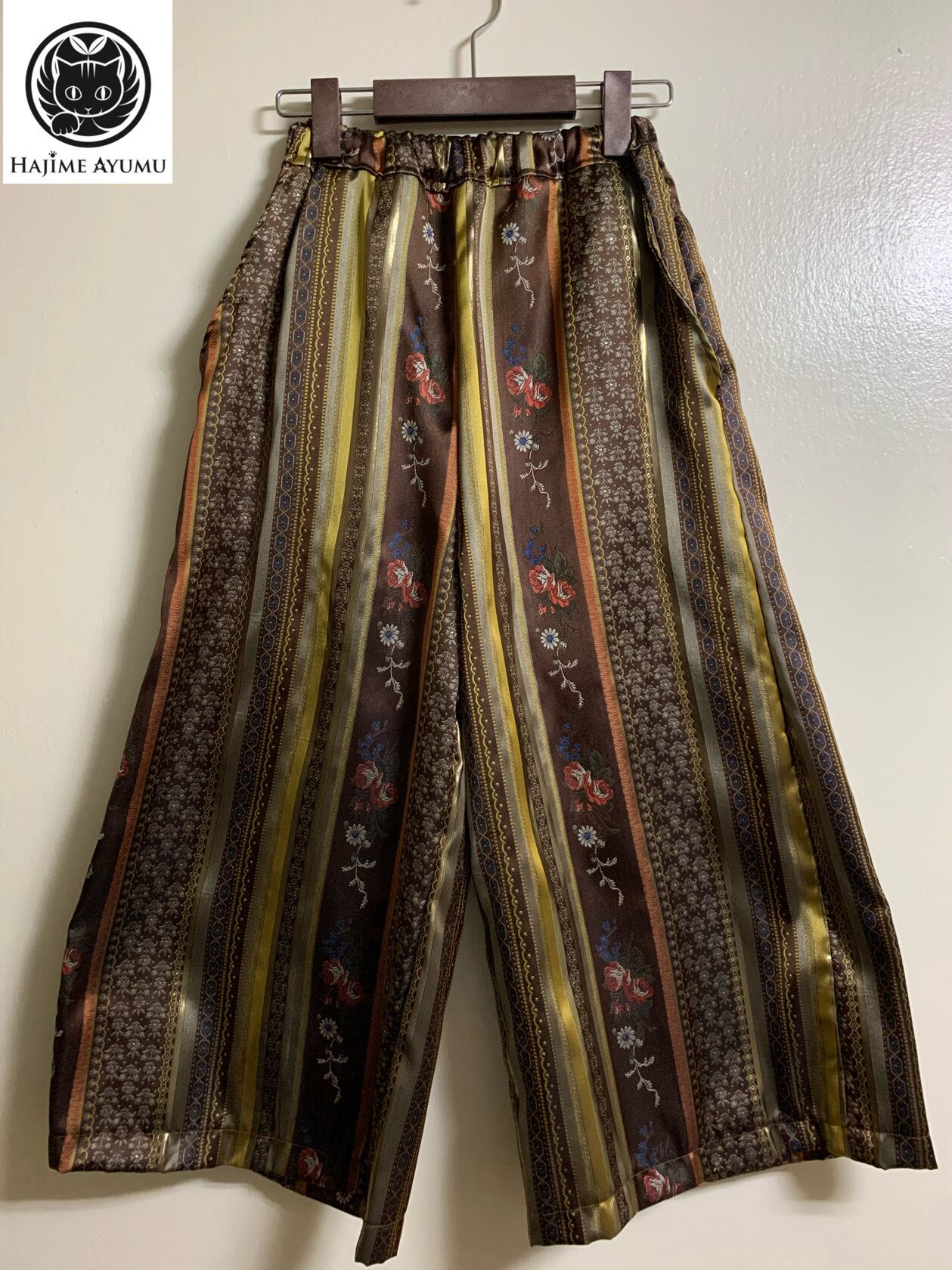 HAJIME AYUMU 薔薇柄ジャガードカジュアルデザインガウチョパンツ フルオーダー専用 ブラウン ハンドメイド ファッション