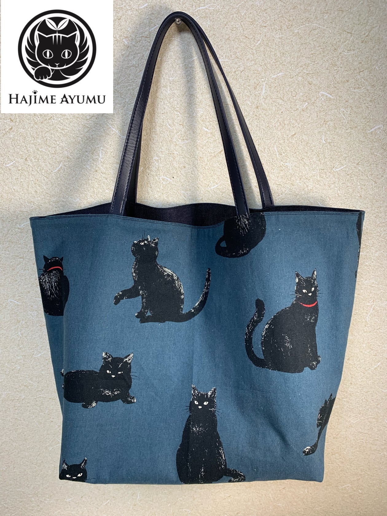 HAJIME AYUMU 高級児島デニム インディゴ オリジナル デニム&猫 リバーシブルトートバッグ オーダーメイド
