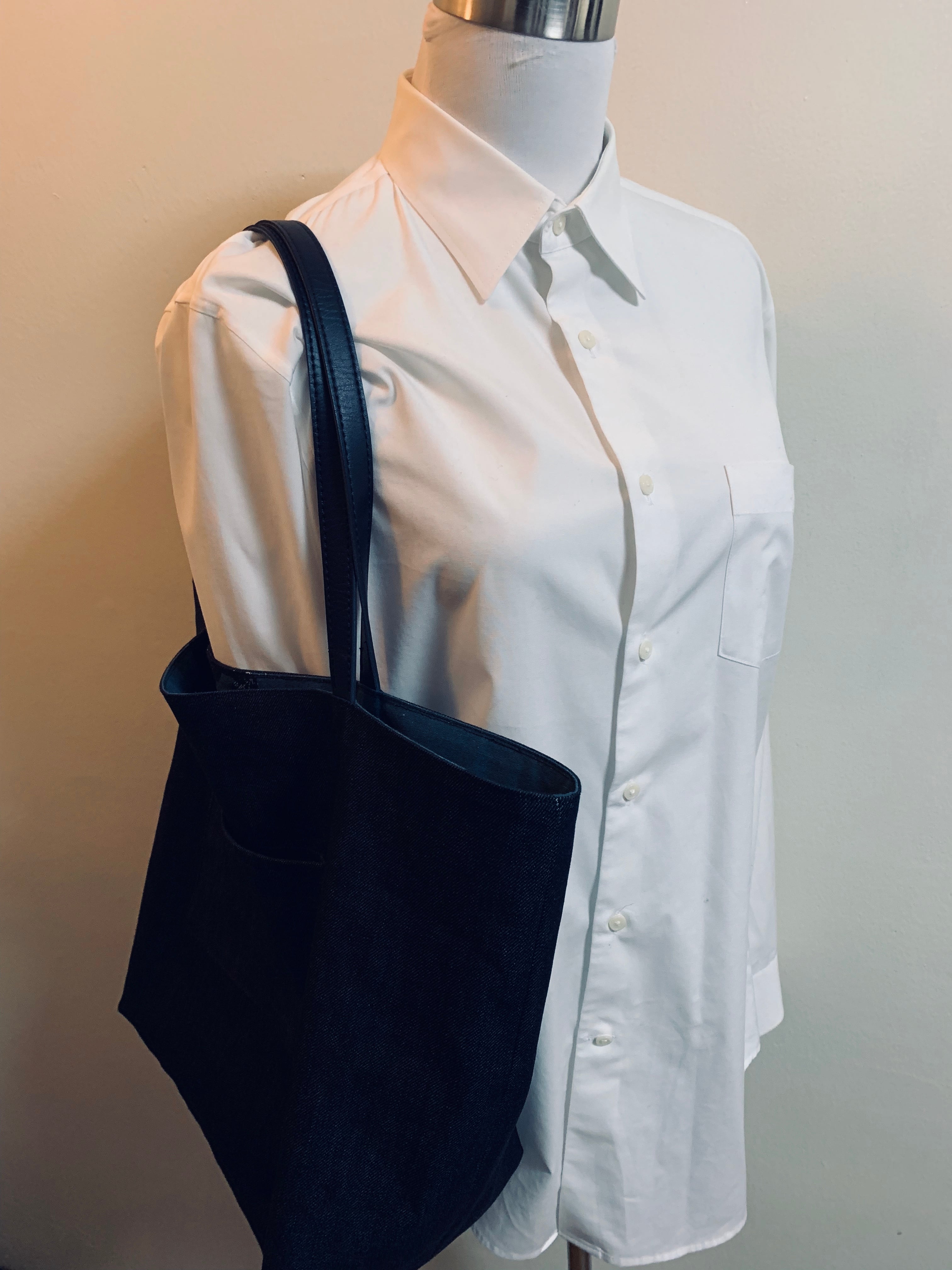 岡山県産のインディゴ染めのデニム生地と可愛らしい猫のデザイン生地をカジュアル且つシンプルに表現したリバーシブルのトート・ハンドバックです。