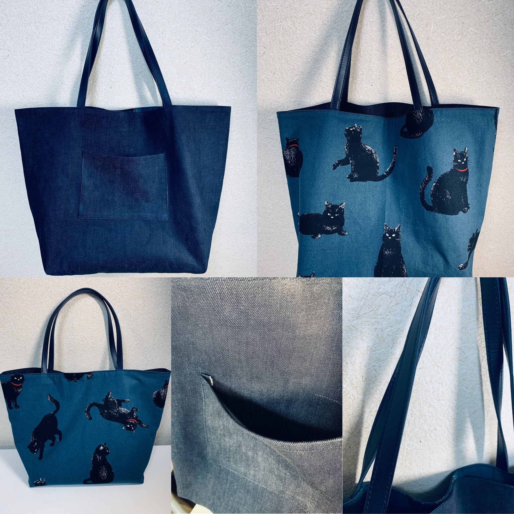 リバーシブルの為、デニムでお使い頂いたり、ちょっぴり気分を変えて可愛い黒猫でお出かけするのもおススメです!