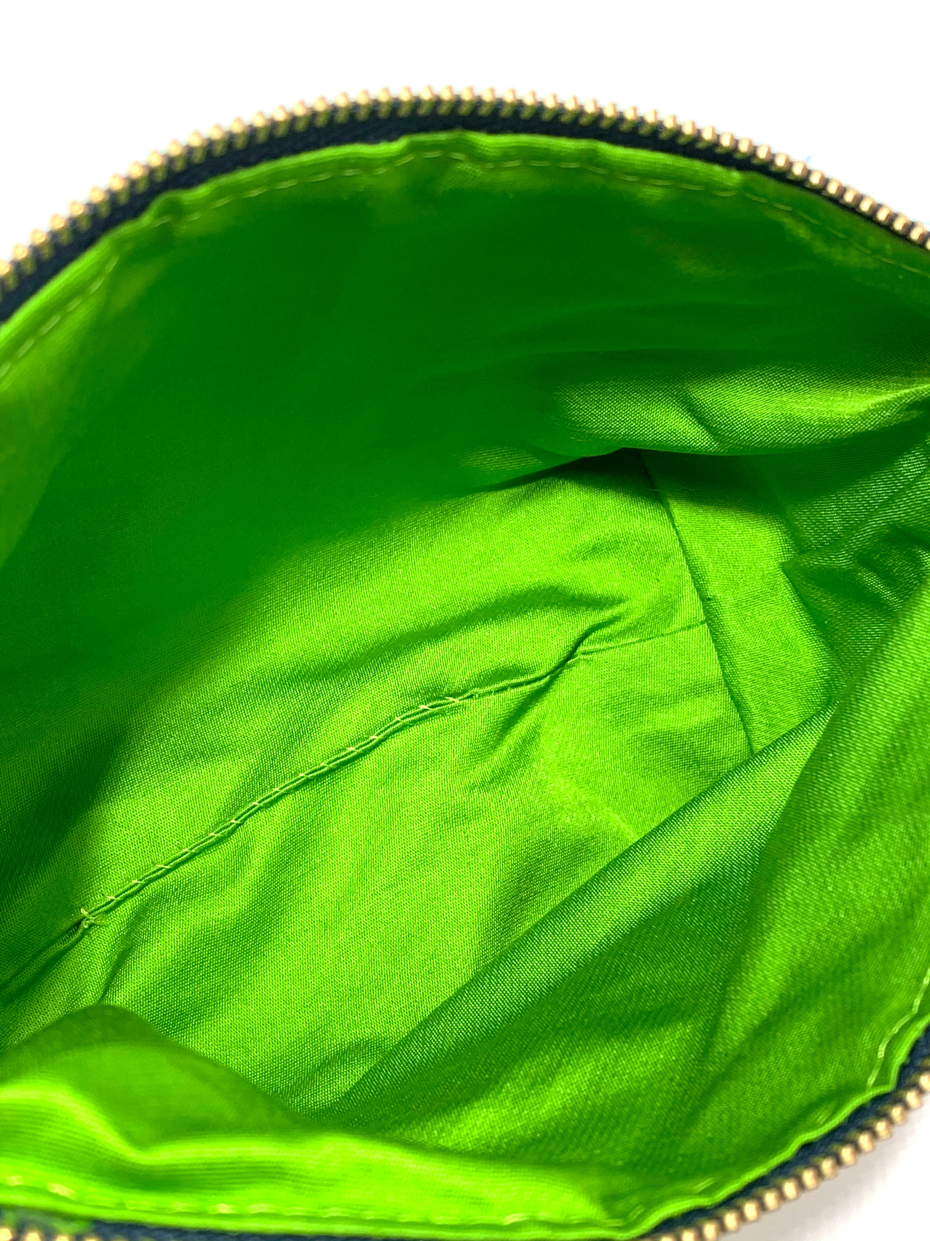 【現品1点のみ!!】HAJIME AYUMU 高級和柄付き着物帯リメイクデザインポーチ グリーン