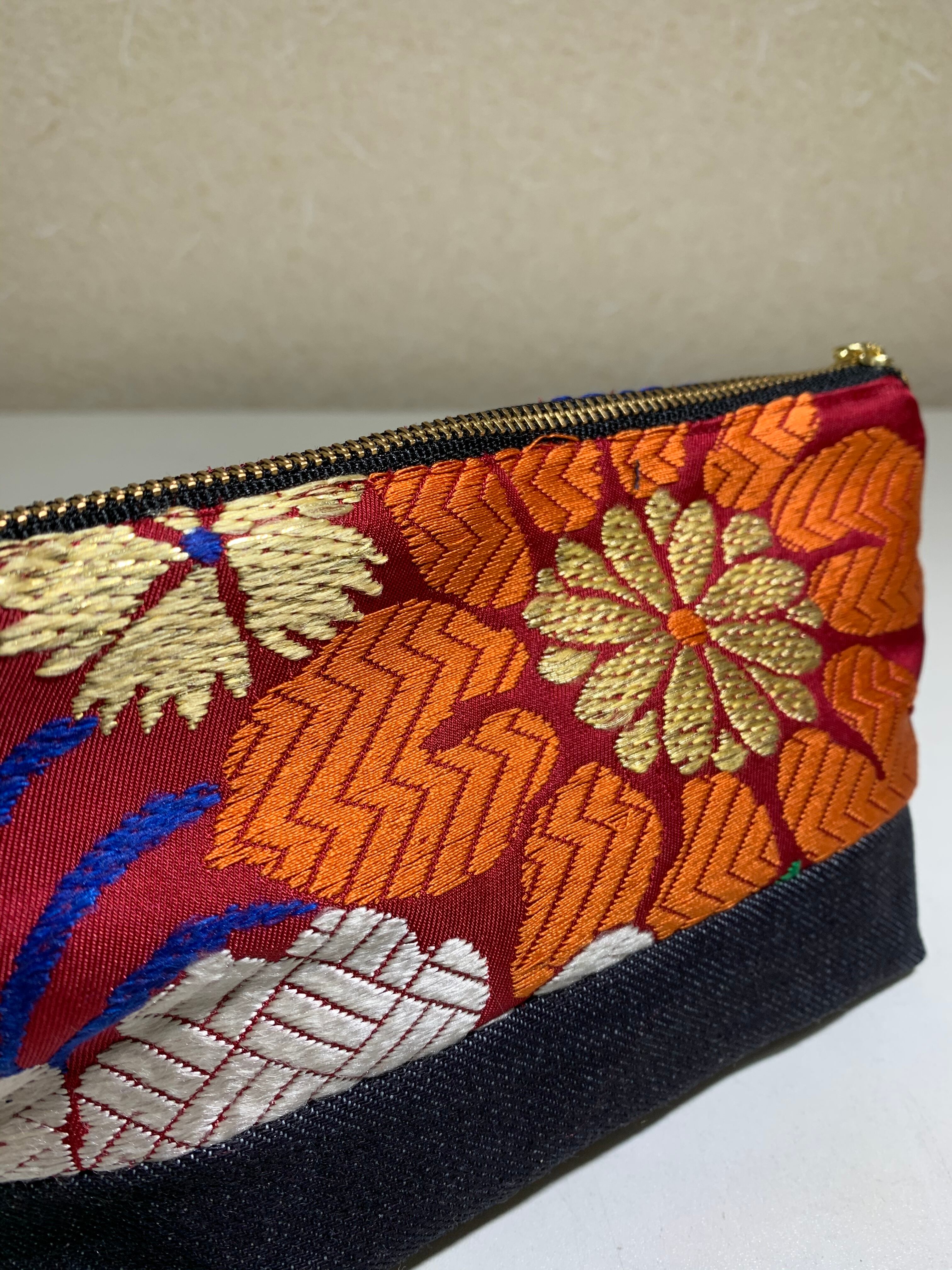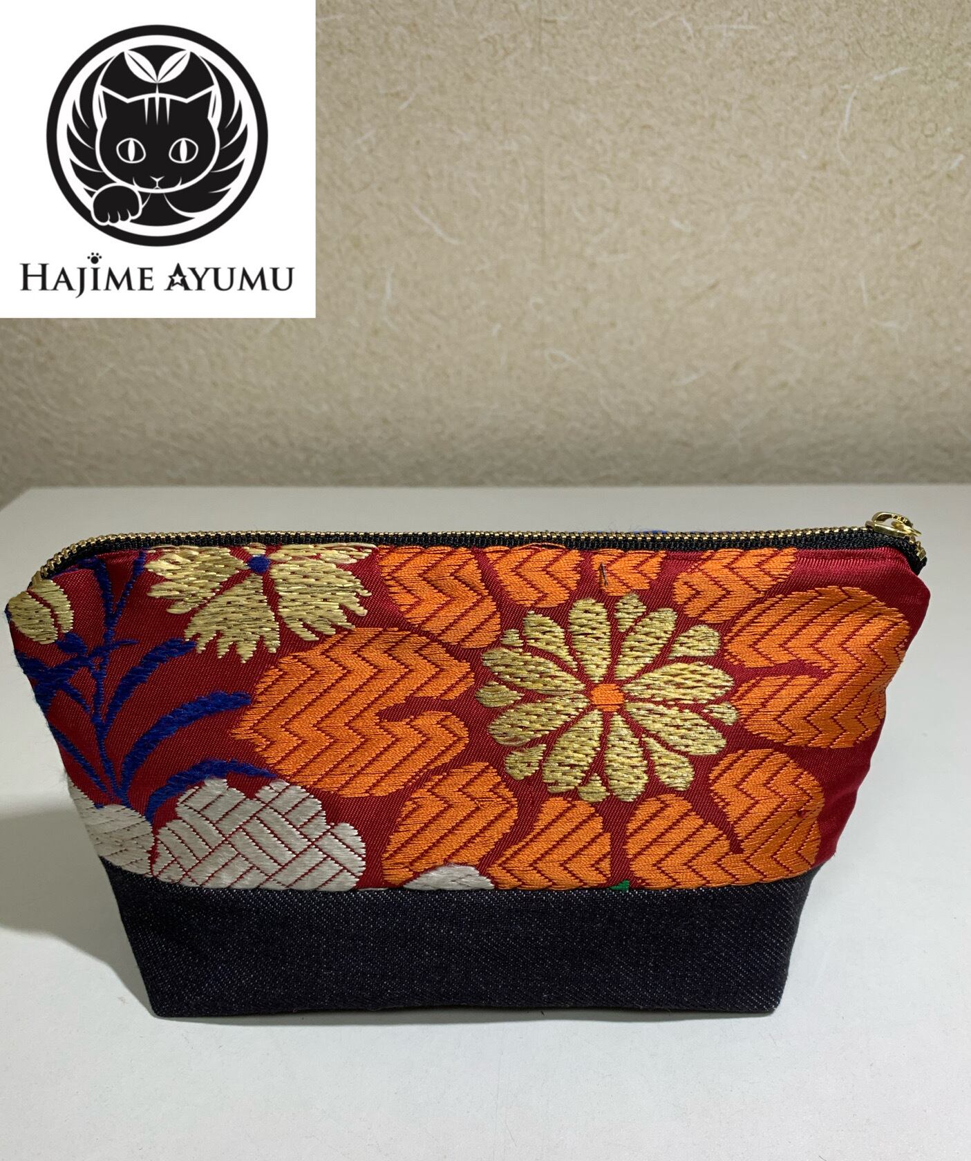 ◾️【現品限り‼︎】HAJIME AYUMU 高級柄付き着物帯リメイク&児島デニム 和風ポーチ