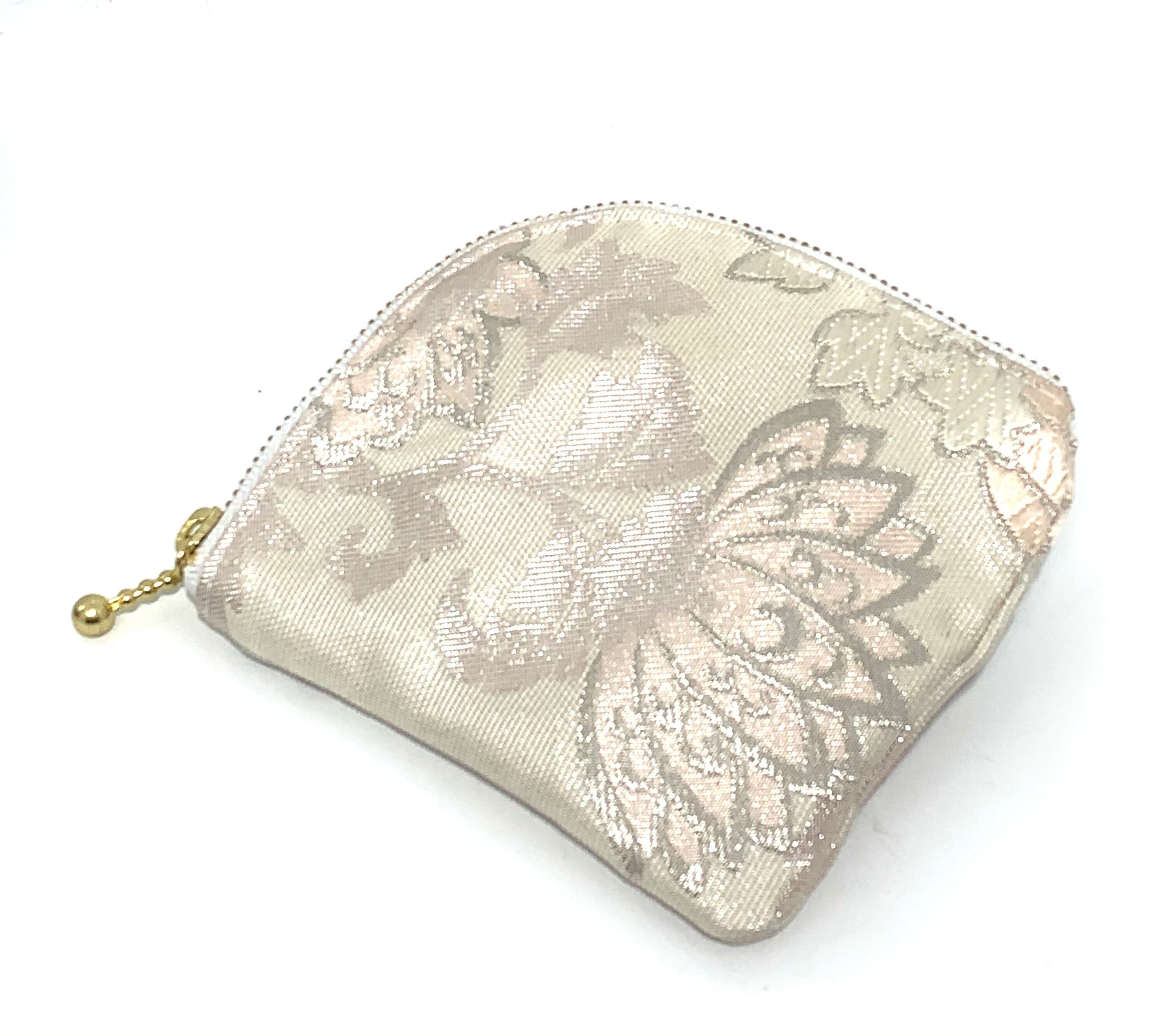 ◾️【現品1点のみ!!】HAJIME AYUMU 高級柄付き着物帯リメイクL字財布 シルバー 小銭入れ コインケース ハンドメイド 和風