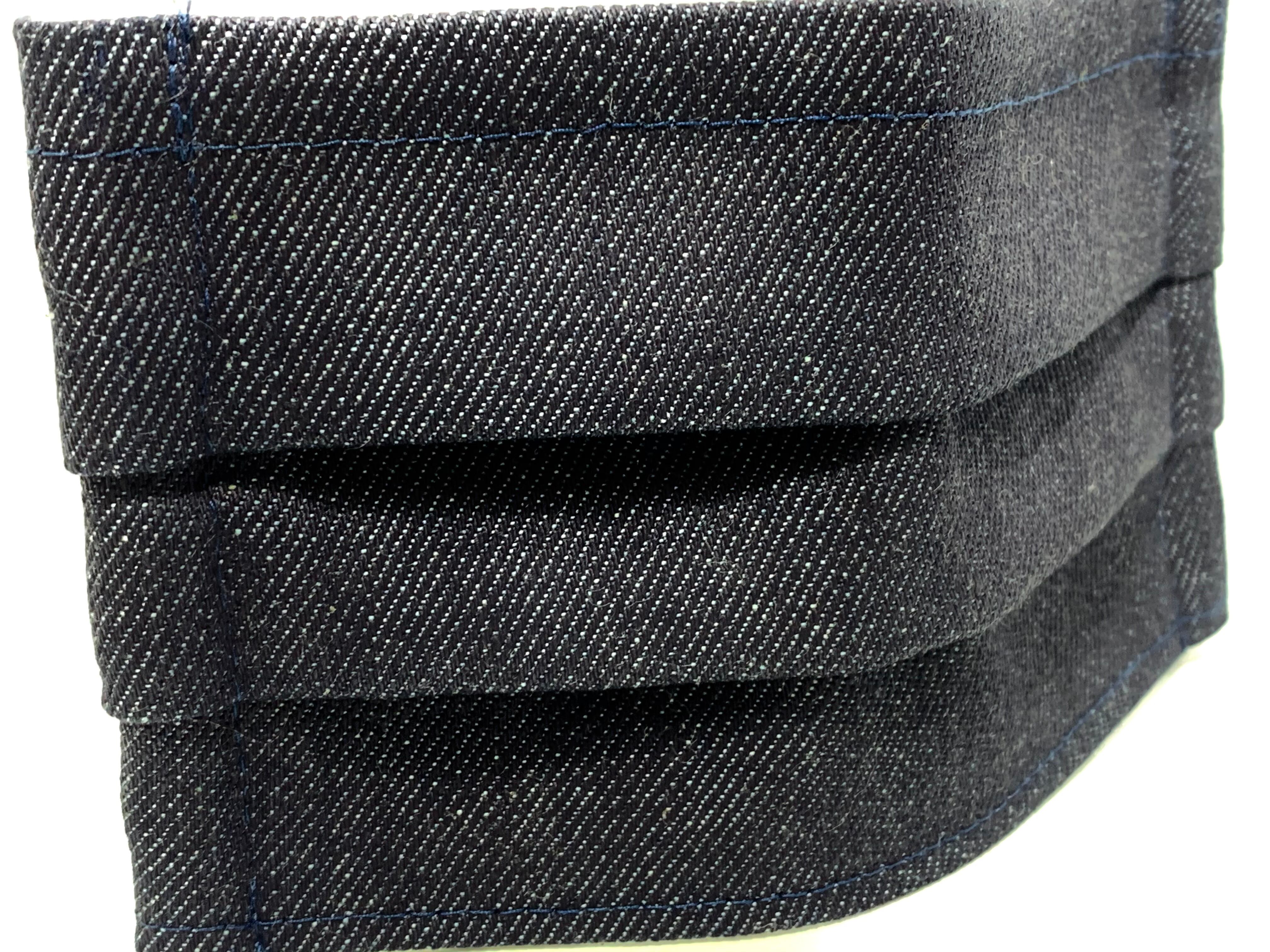 ◾️ 表はカジュアルでインディゴブルーカラーの岡山県産高級児島デニムを、裏は高品質のダブルガーゼを使った折り畳み式のデザインマスクになります。