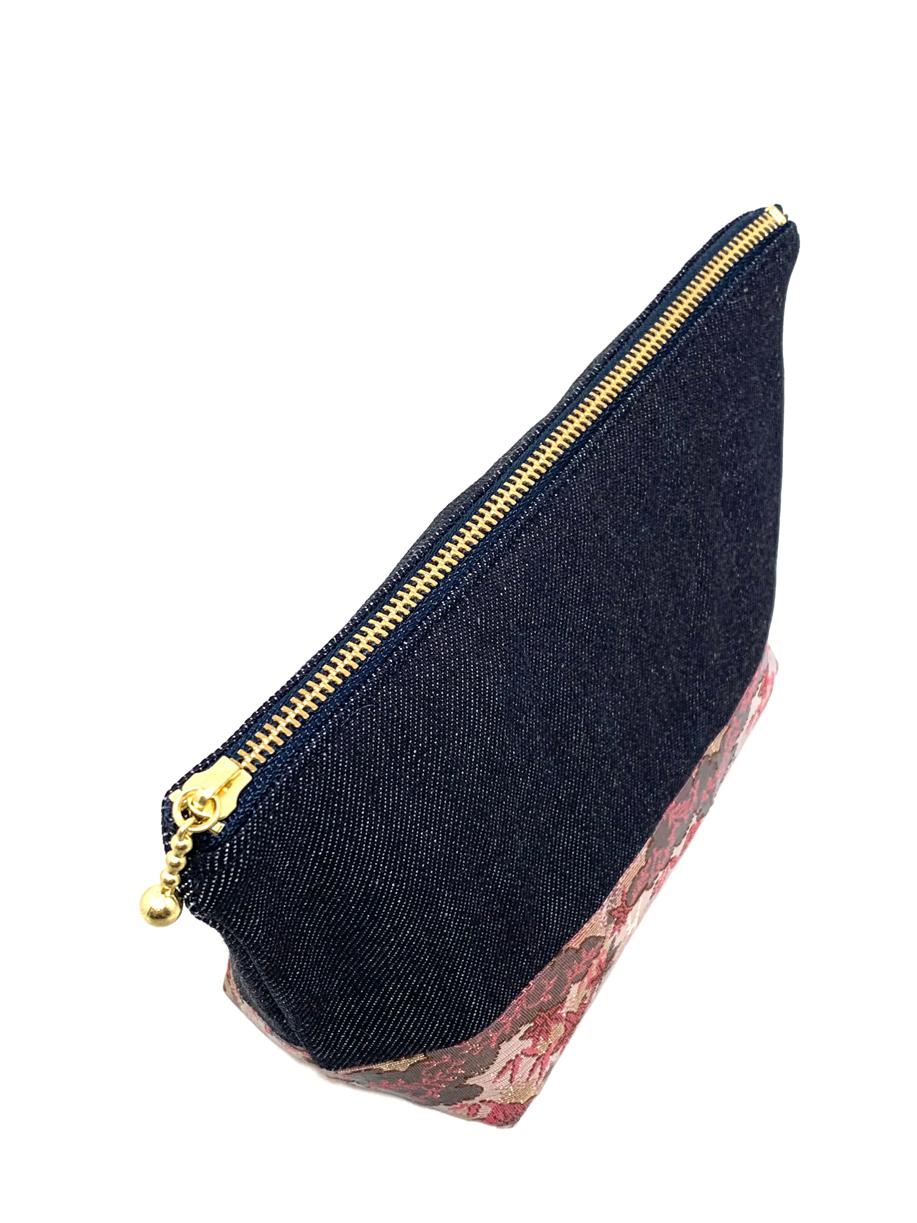 ◾️【現品限り‼︎】HAJIME AYUMU 高級児島デニム&高級着物帯リメイクデザインポーチ ネイビー×ピンク