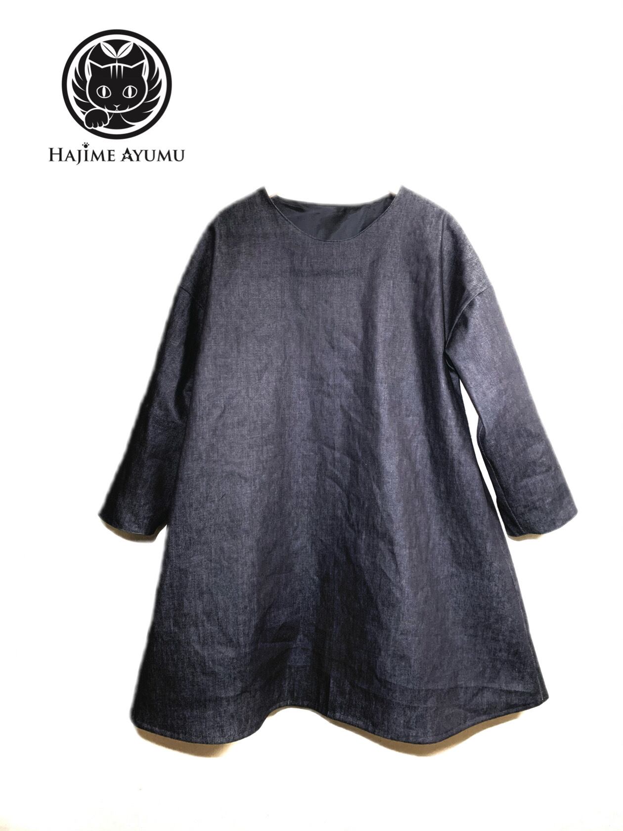HAJIME AYUMU 高級児島デニム クルーネックロングチュニック インディゴ S~LL フルオーダー ハンドメイド トップス ワンピース