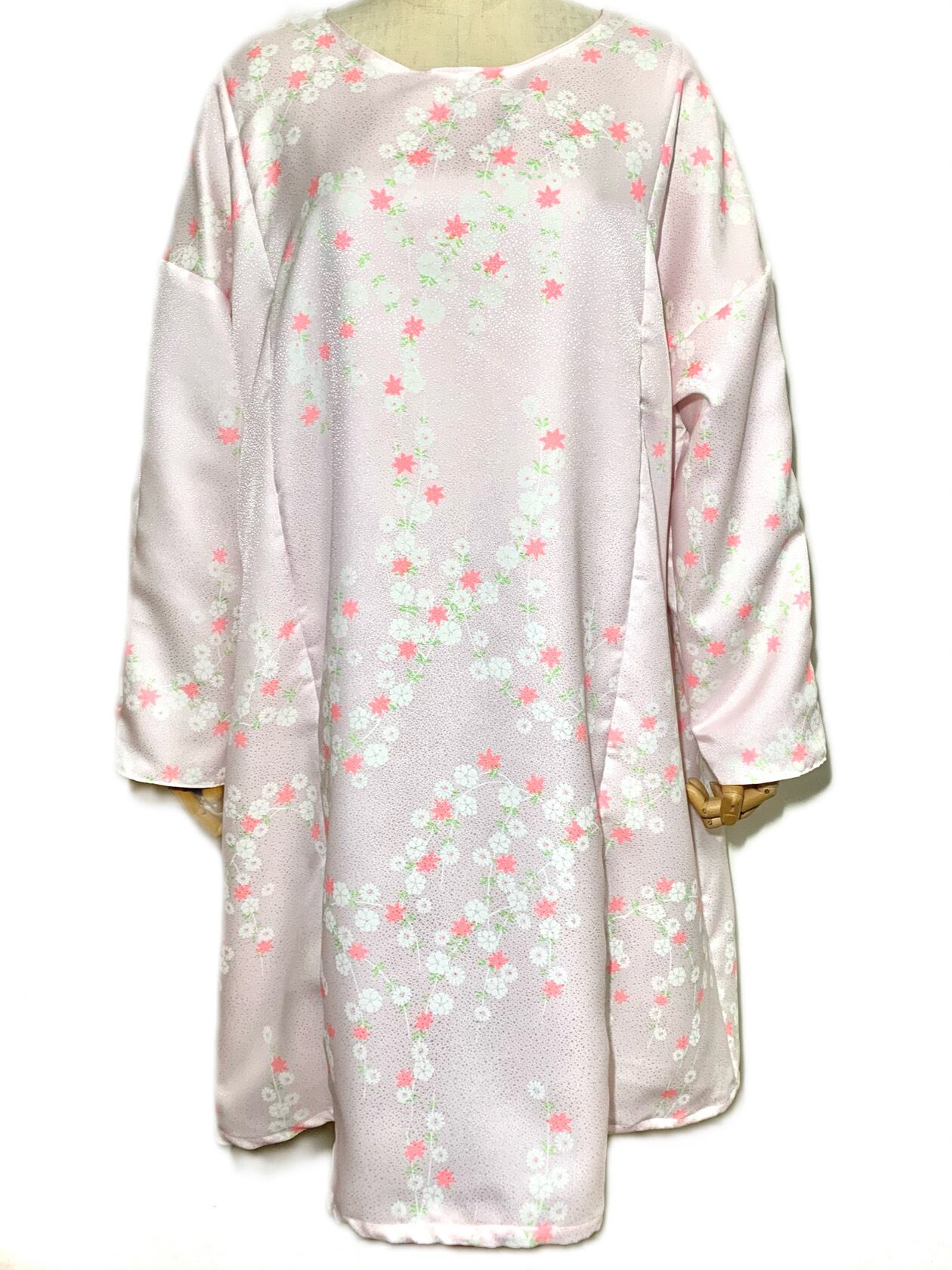【現品1点限り】HAJIME AYUMU 春カラー花柄着物生地デザインロングチュニック ピンク Freeサイズ ハンドメイド ワンピース ルームウェア
