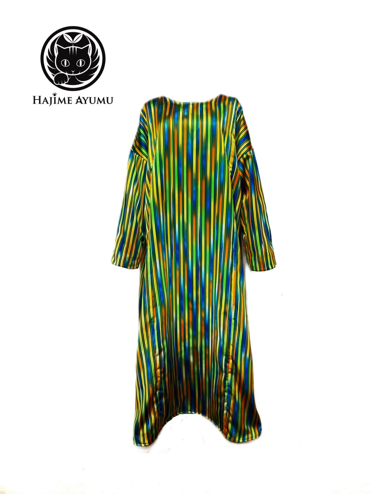 ◾️西陣織工業組合認定の鮮やかな虹色高級西陣織生地を惜しみなく使ったクルーネックロングワンピースになります♪