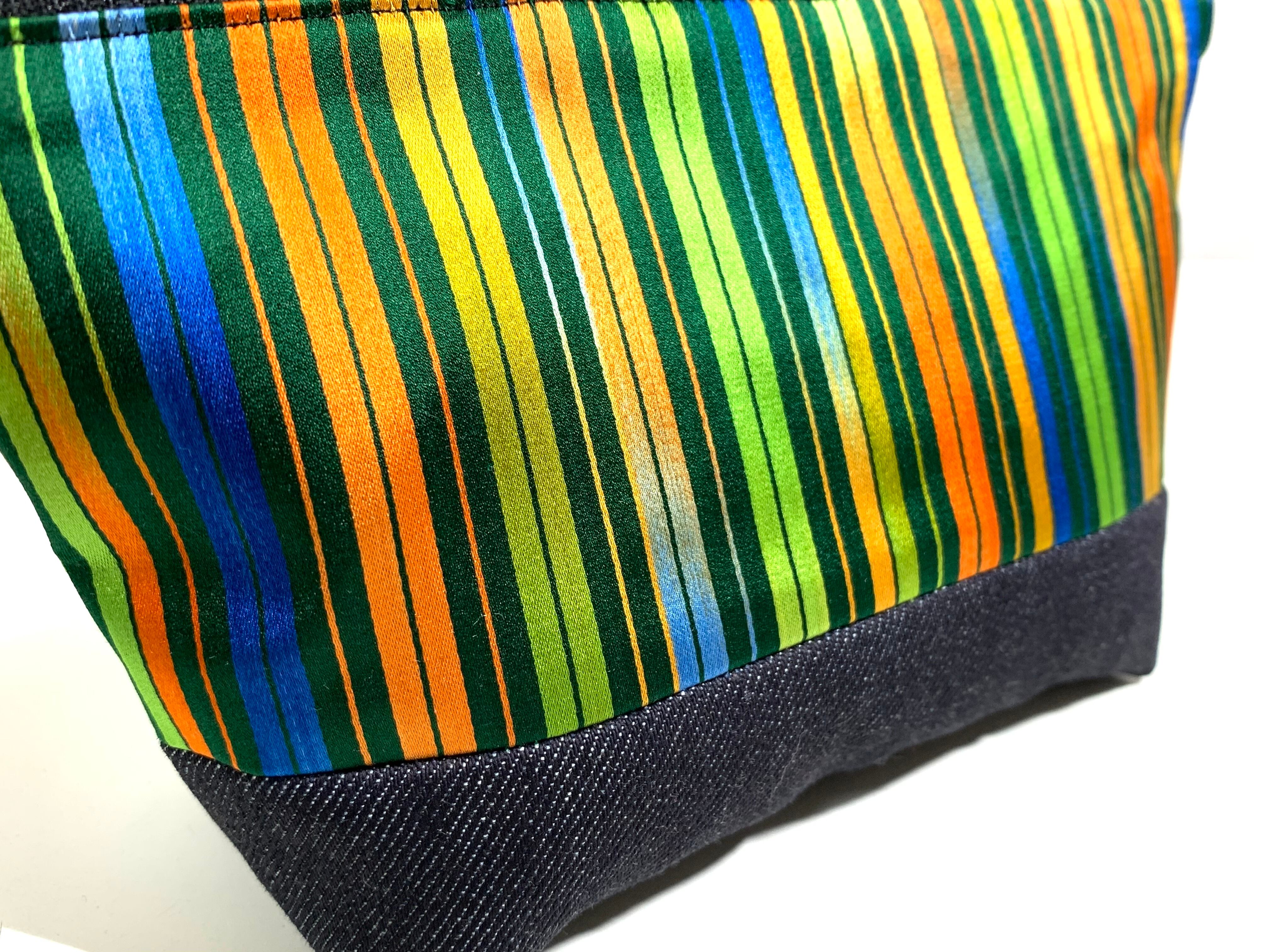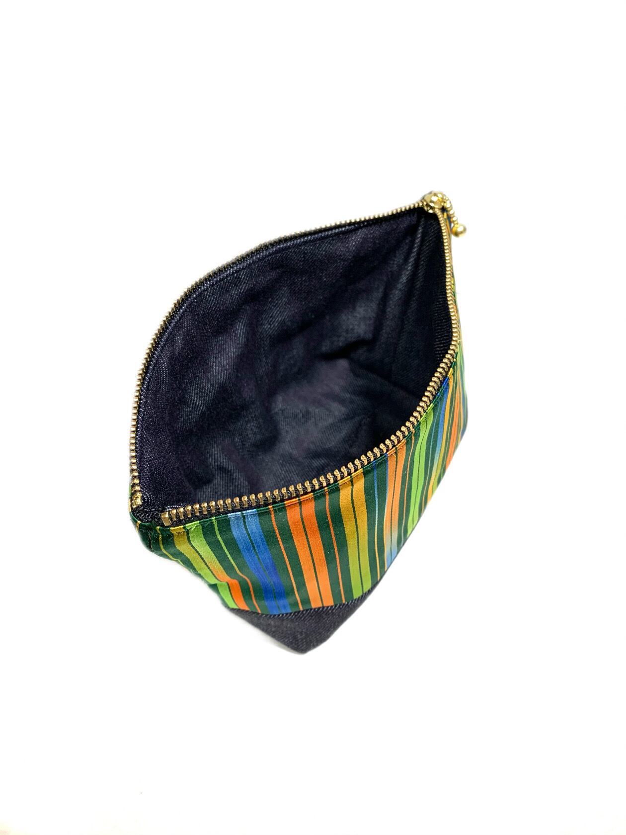 ◾️西陣織工業組合認定の鮮やかな虹色高級西陣織生地と岡山県産の児島デニム惜しみなく使ったカジュアルデザインポーチになります♪