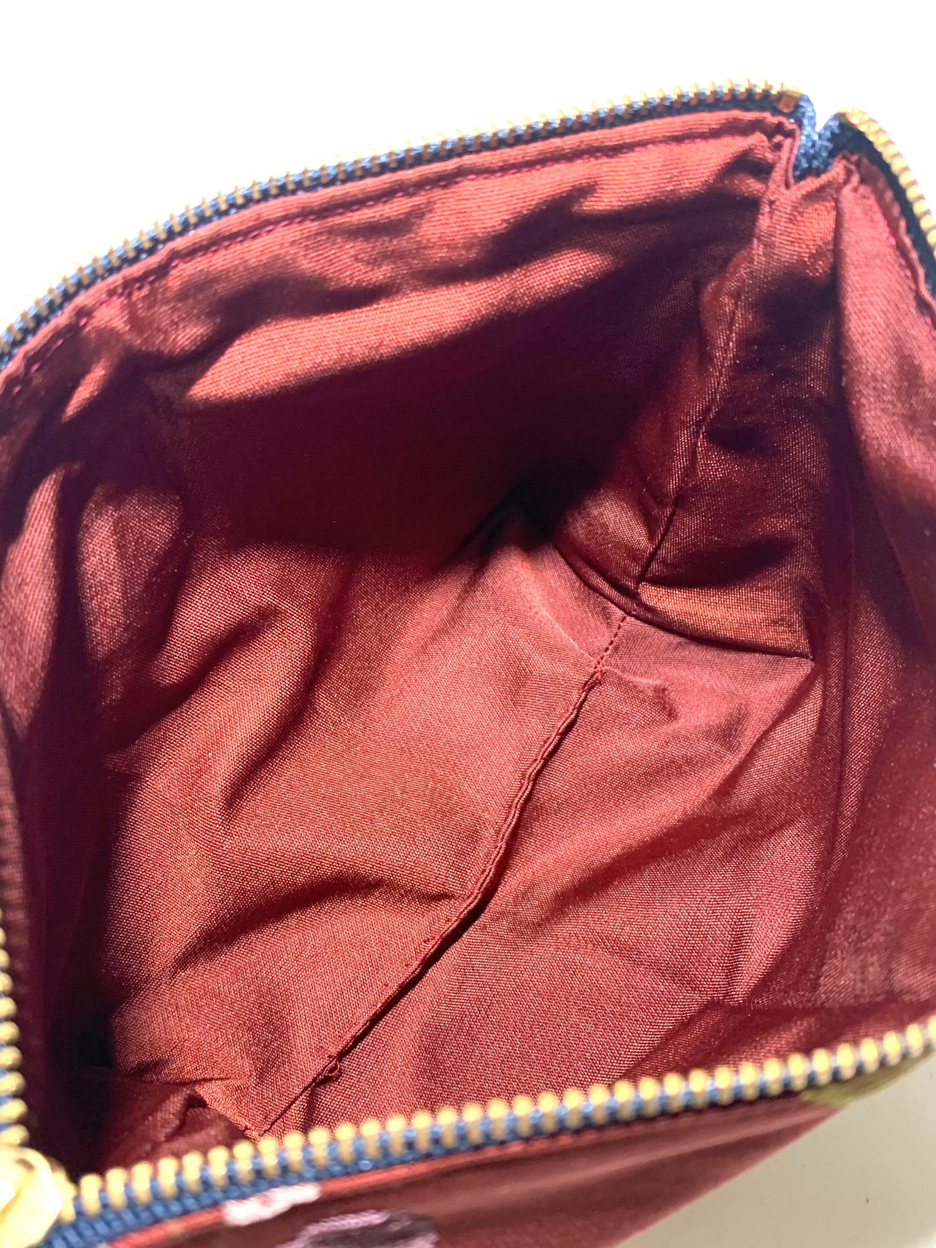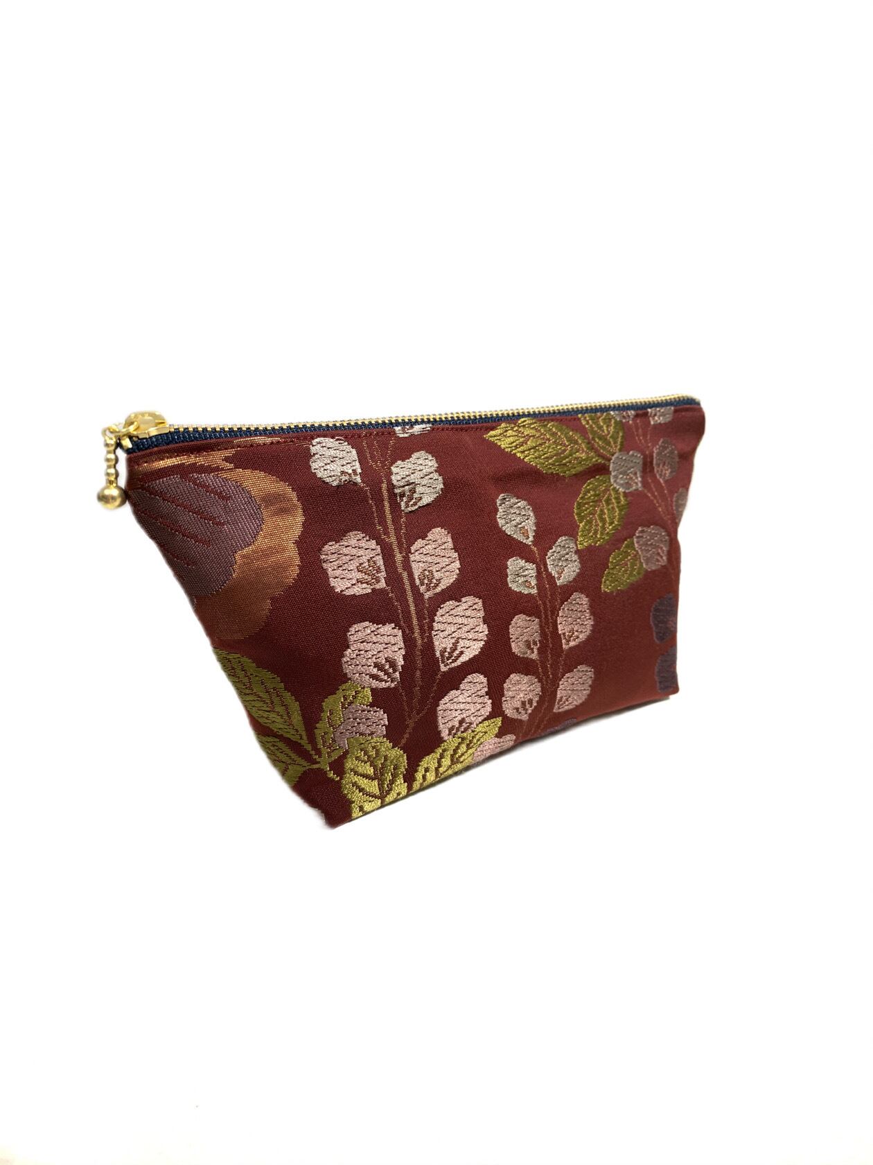 ◾️【現品1点のみ!!】HAJIME AYUMU 高級和柄付き着物帯リメイクデザインポーチ ハンドメイド 和風 小物入れ 赤紫 ワインレッド