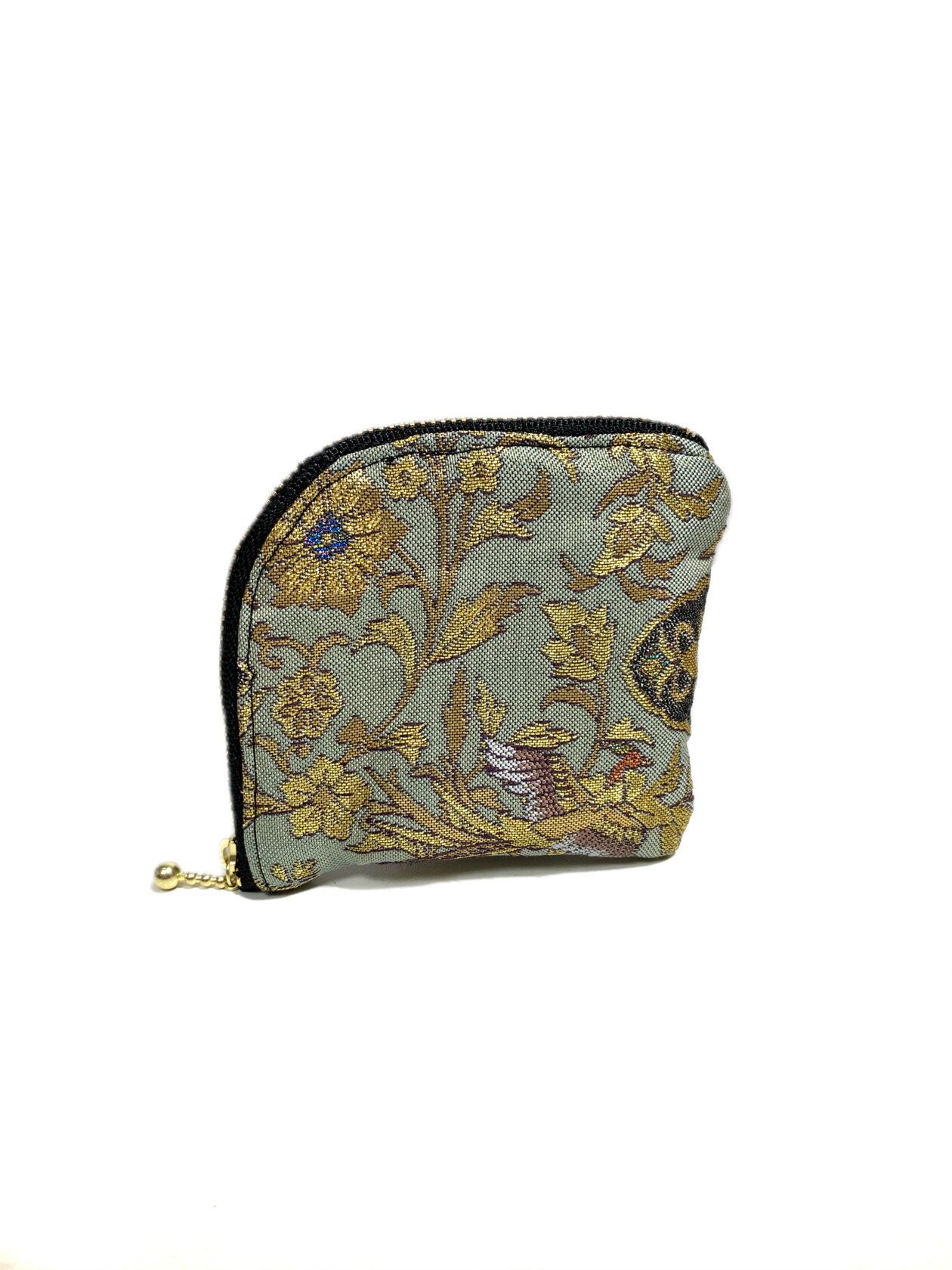 ◾️【現品1点のみ!!】HAJIME AYUMU 高級柄付き着物帯リメイク&高級児島デニムデザインL字財布 ハンドメイド コインケース ゴールド