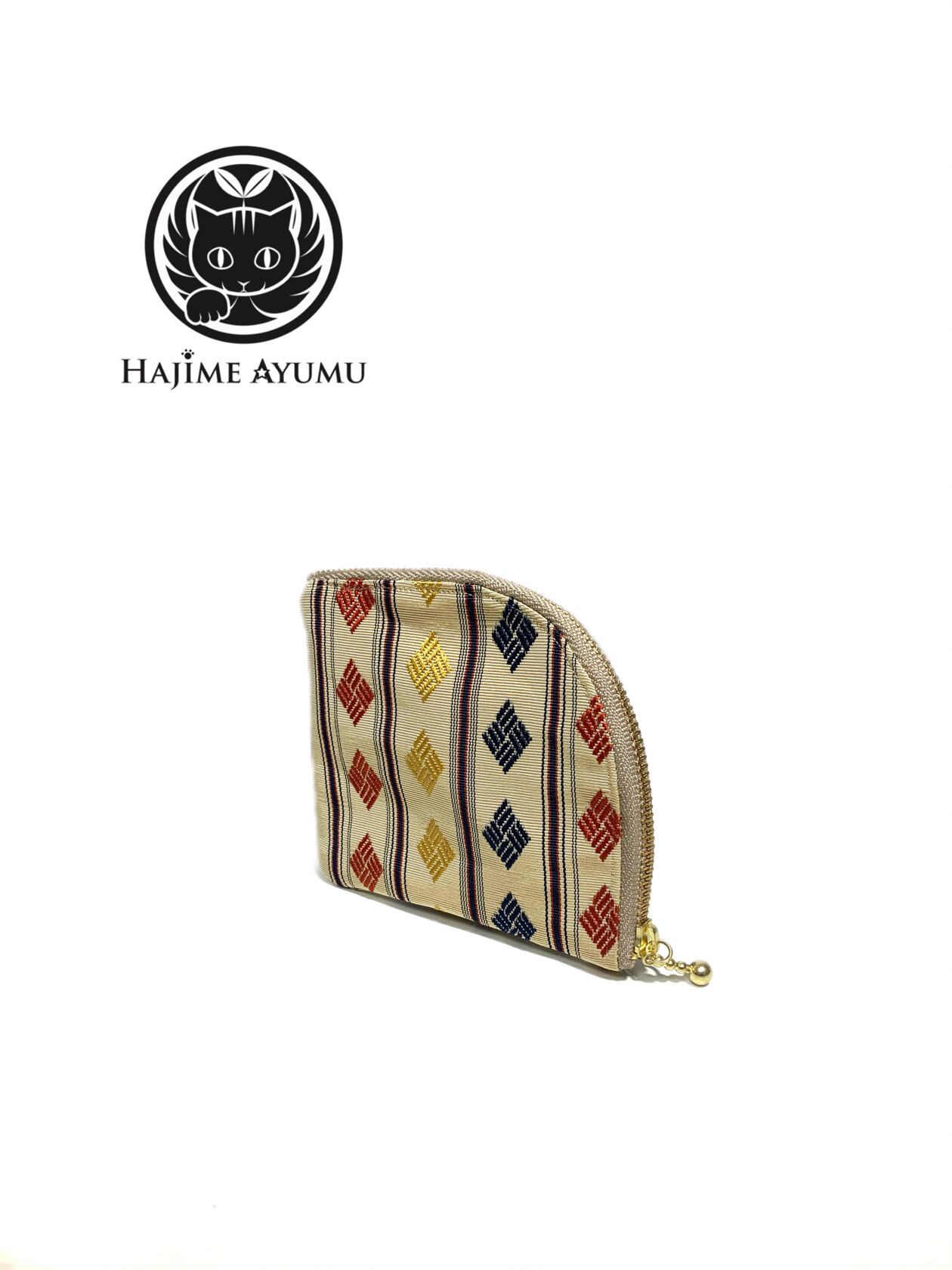 【現品1点のみ!!】HAJIME AYUMU 筑前博多織 高級和柄着物帯リメイクデザインL字財布 ベージュ