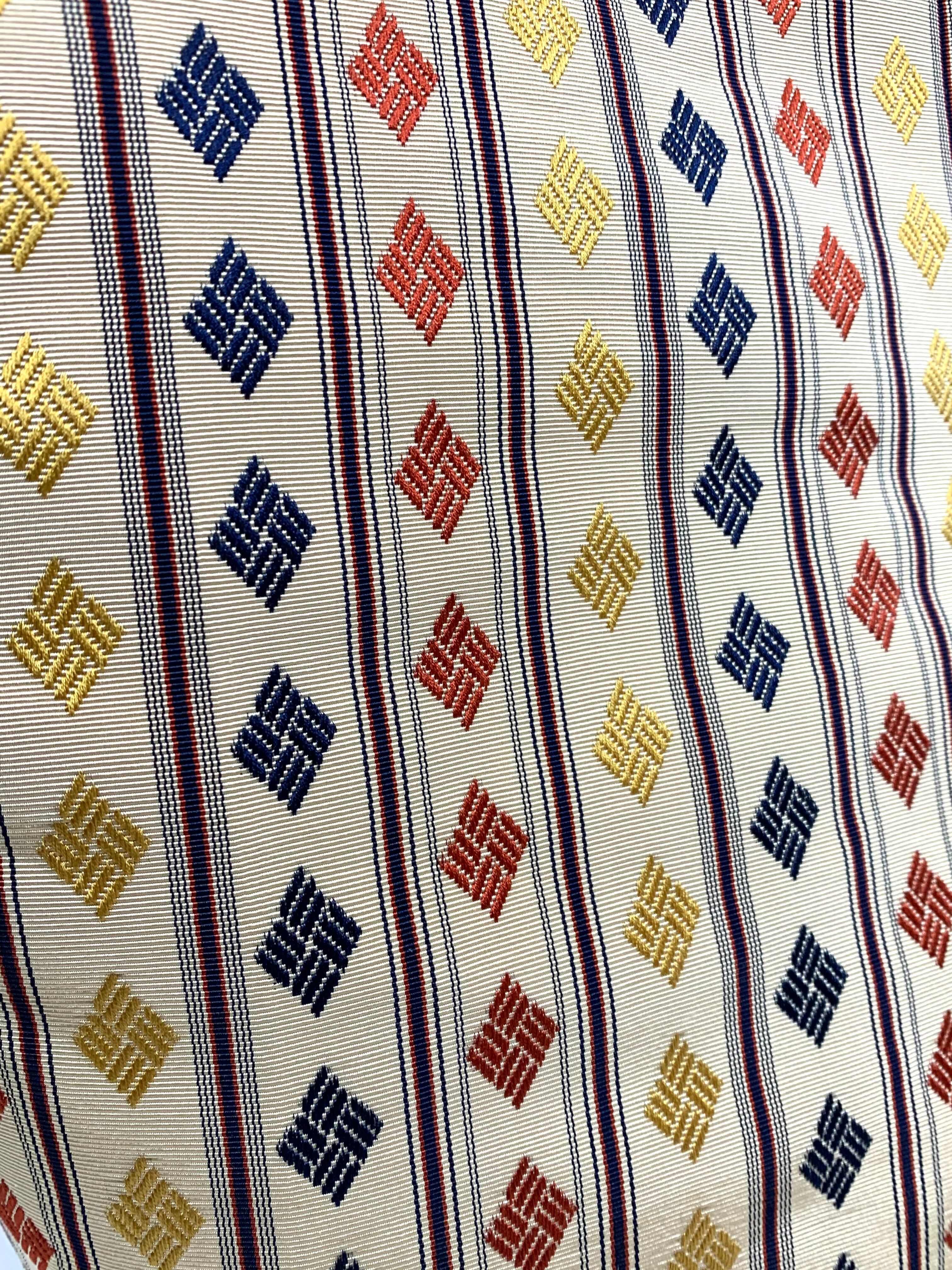 ◾️鮮やかな筑前博多織の高級和柄付きの着物帯をリメイクした高級感が更に増した世界にお一つのみの作品になります。
