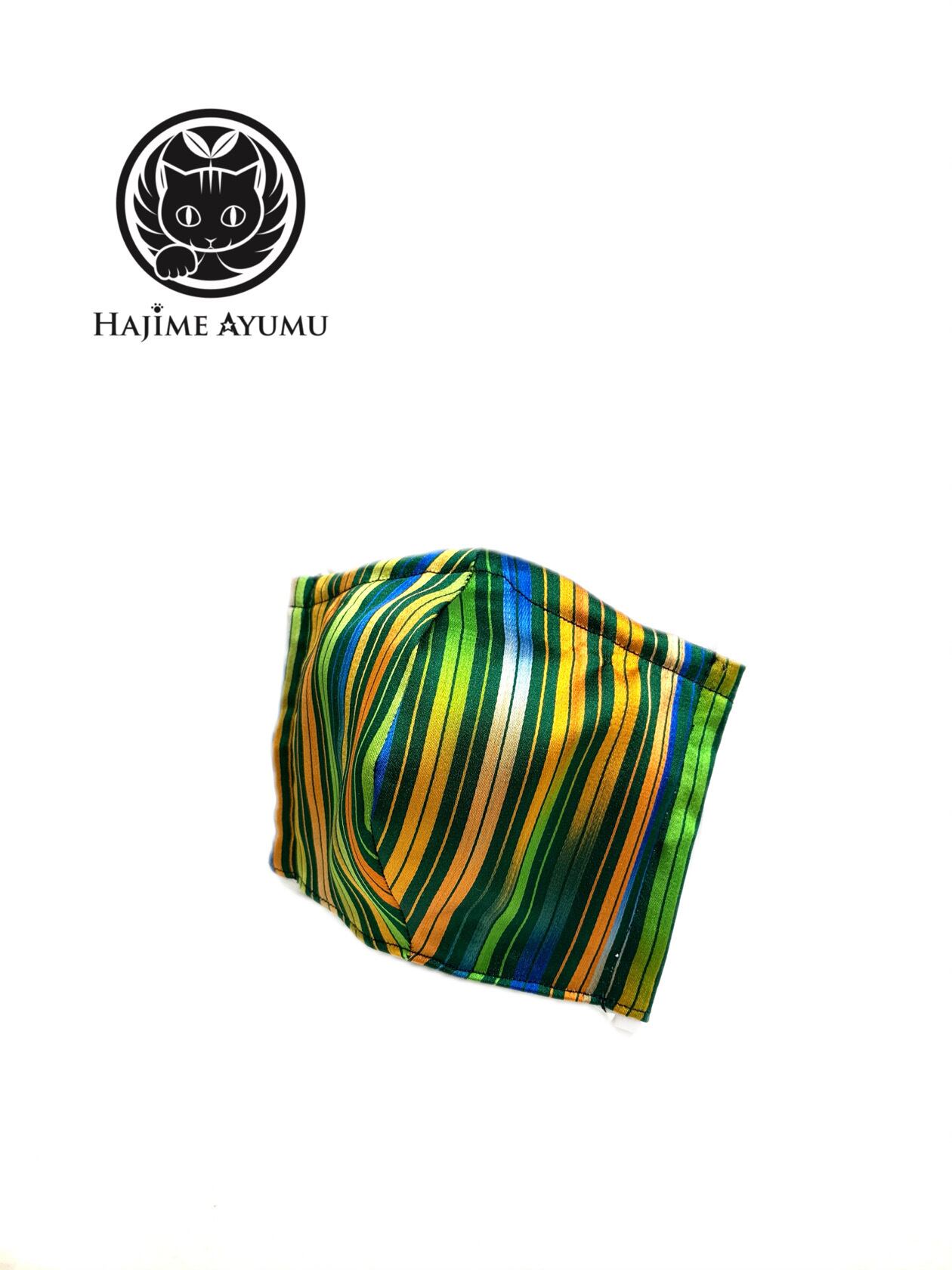 高級感のあるシルク生地、デザイン性のあるストライプ柄でお洒落度満載の世界に一つのマスクでございます!