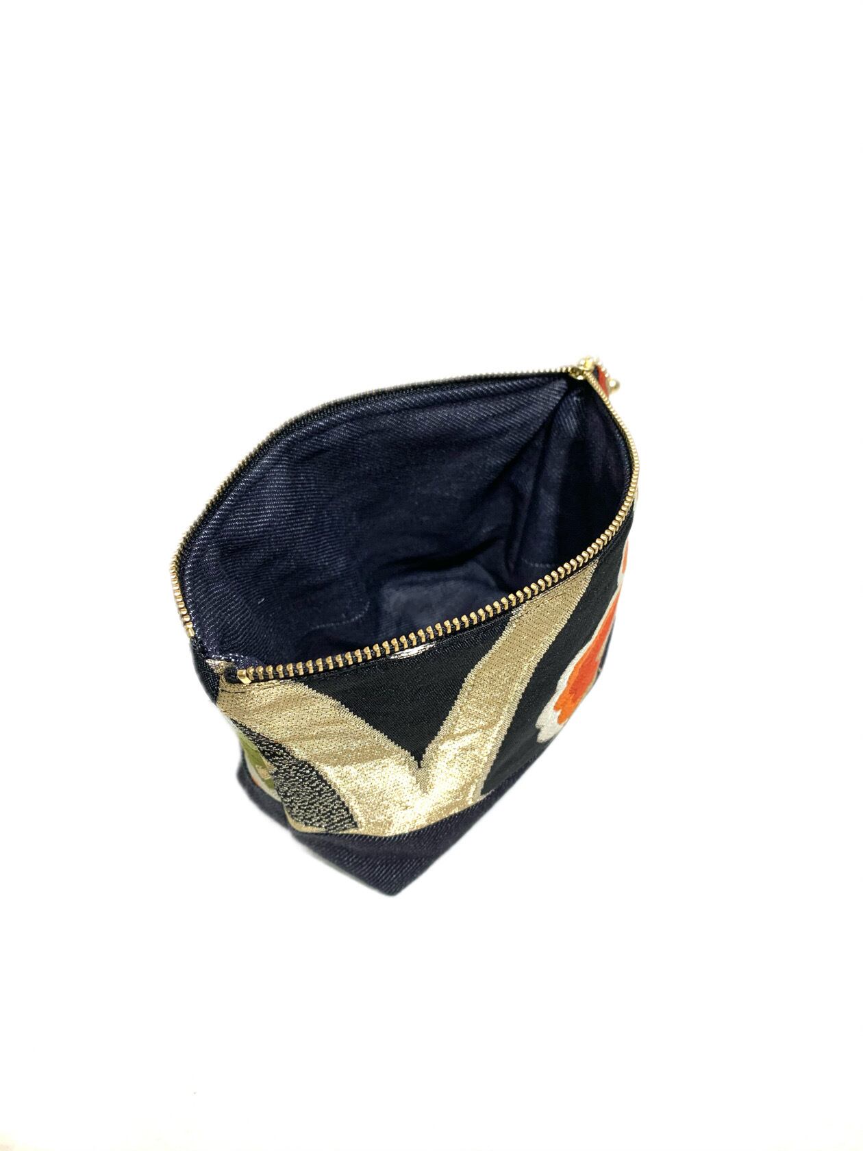 【現品1点限り‼︎】HAJIME AYUMU 高級和柄着物帯&児島デニム リメイクデザインポーチ ブラック×ネイビー