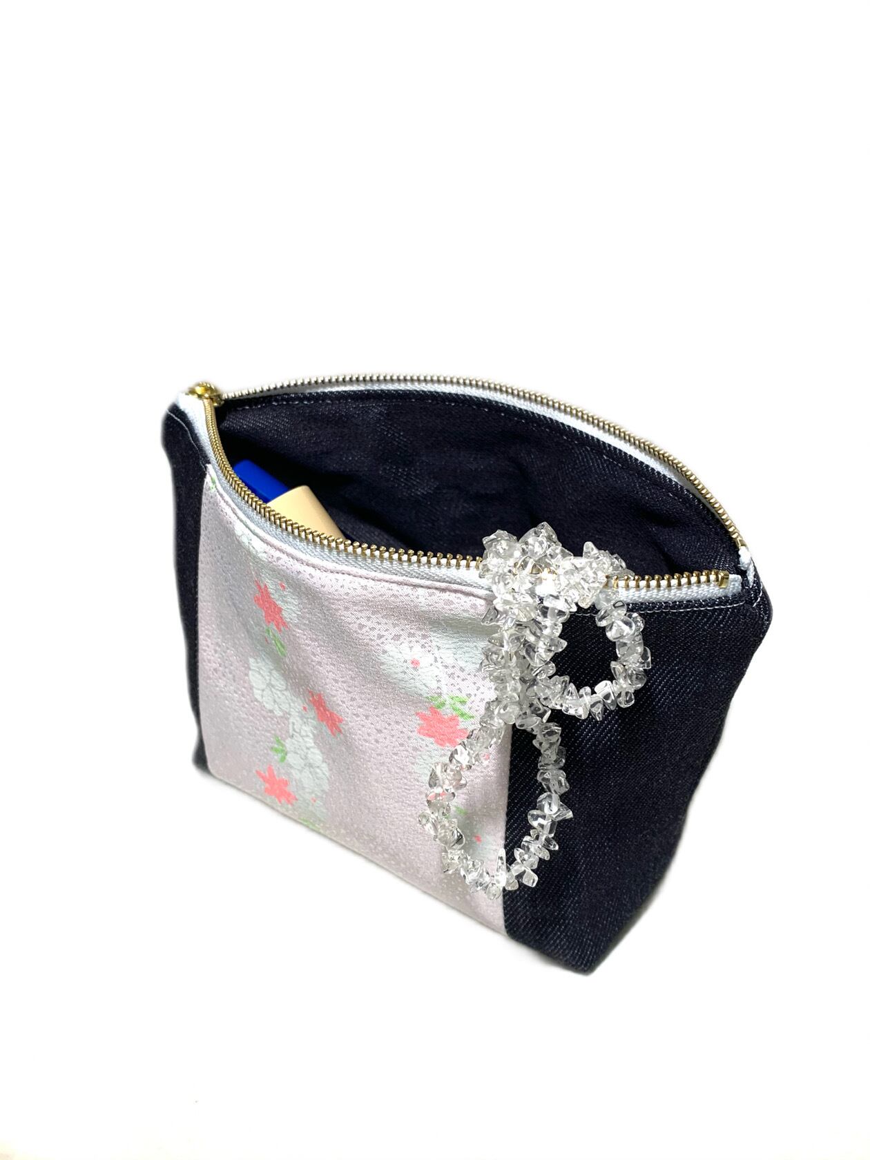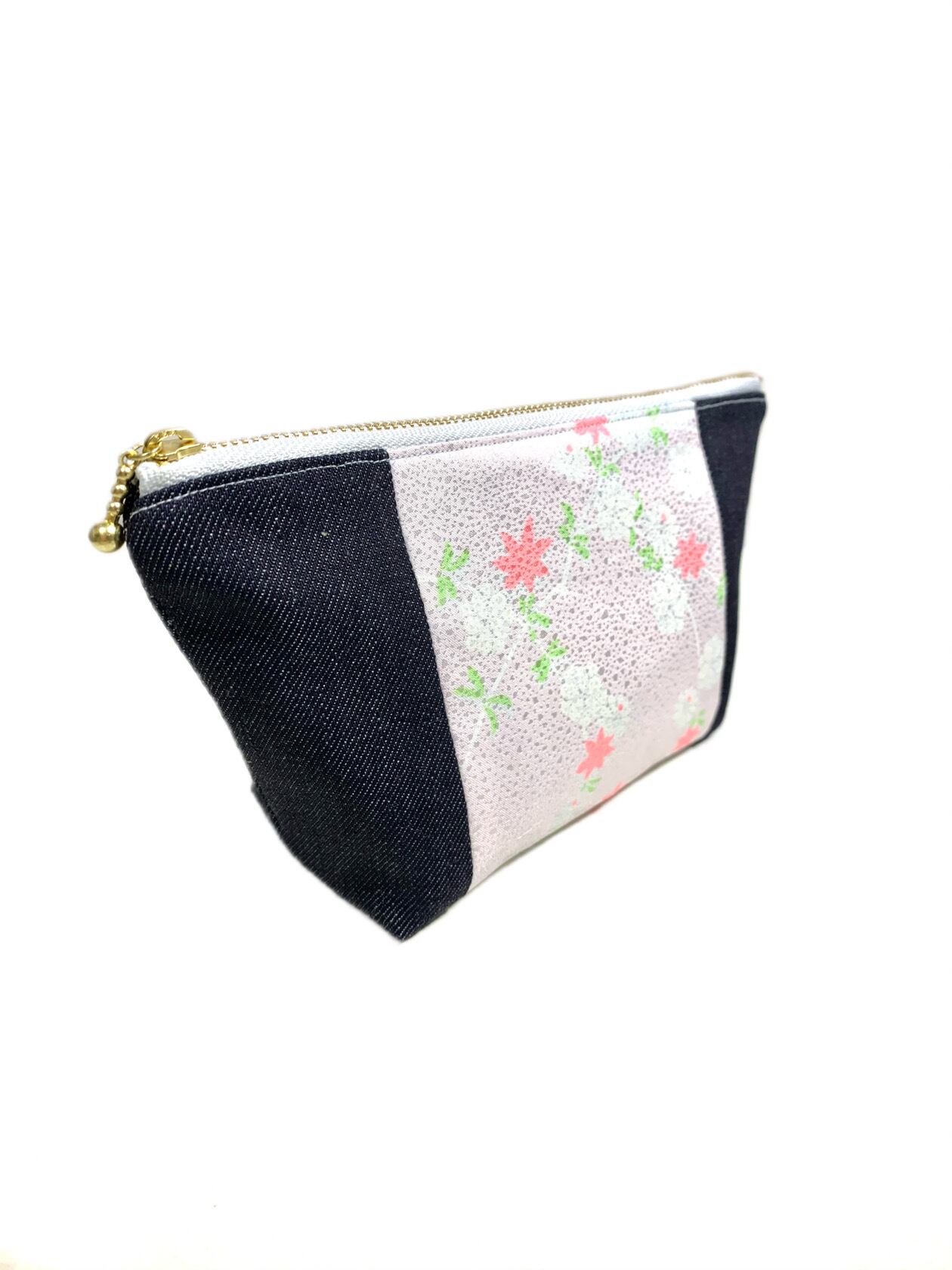 ◾️ 春カラー満載の可愛らしさと上品さを兼ね備えた花柄の高級着物生地を惜しみなく使い、岡山県産のインディゴカラーの児島デニムを組み合わせたカジュアルデザインポーチになります♪