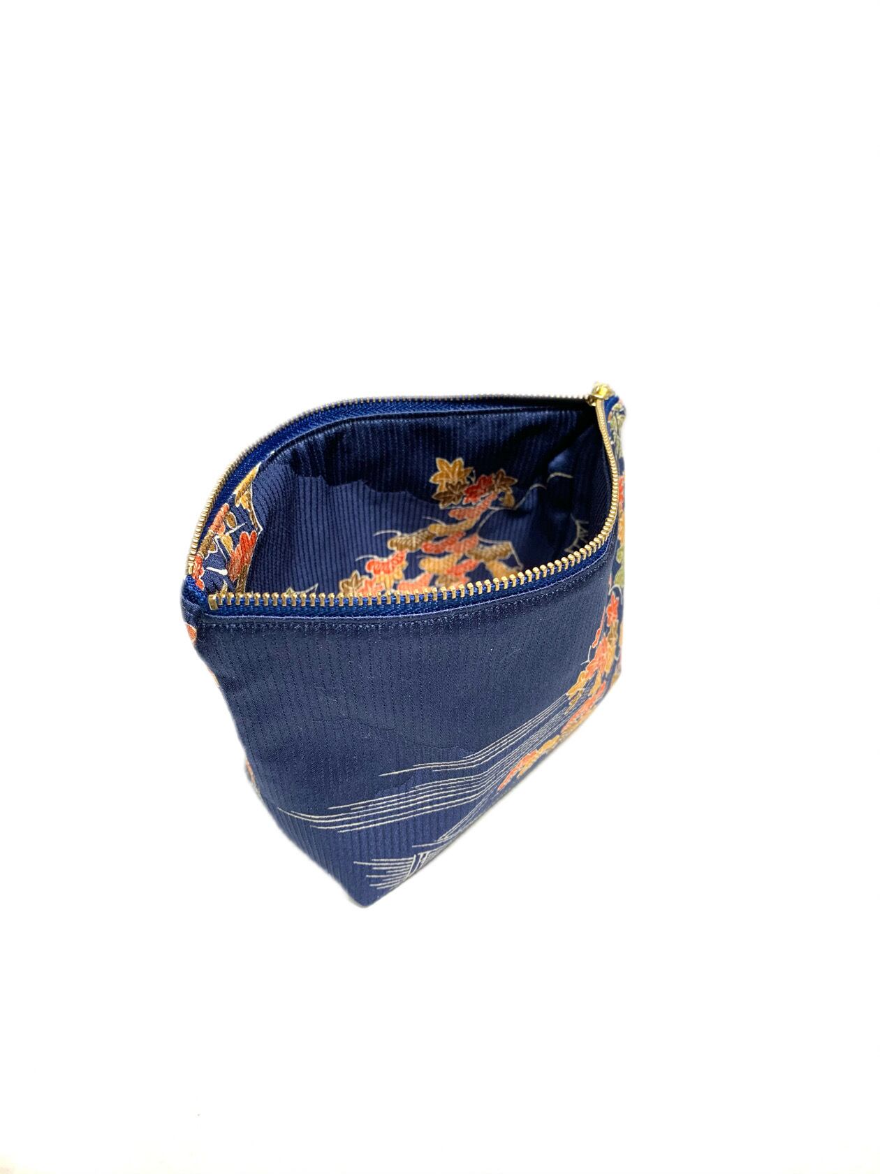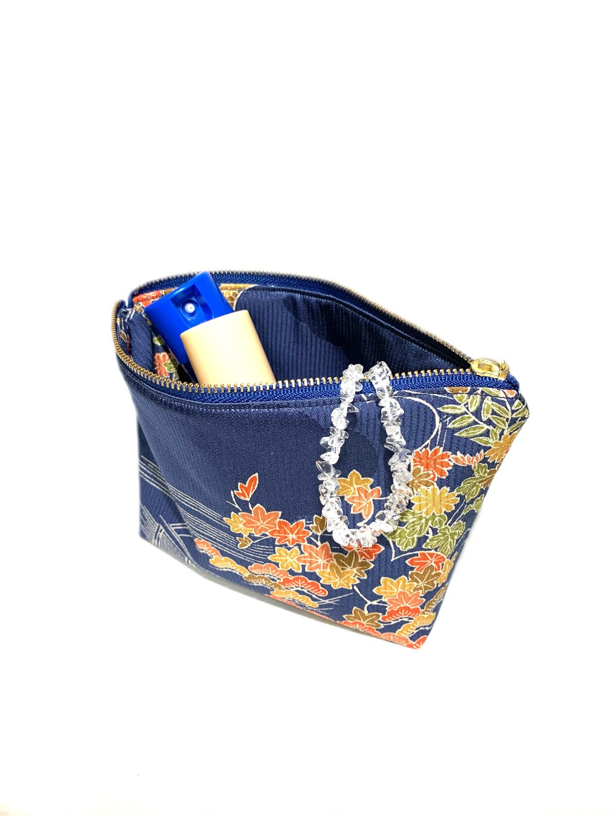 ◾️【現品1点限り‼︎】HAJIME AYUMU 高級和柄着物リメイクデザインポーチ ネイビー
