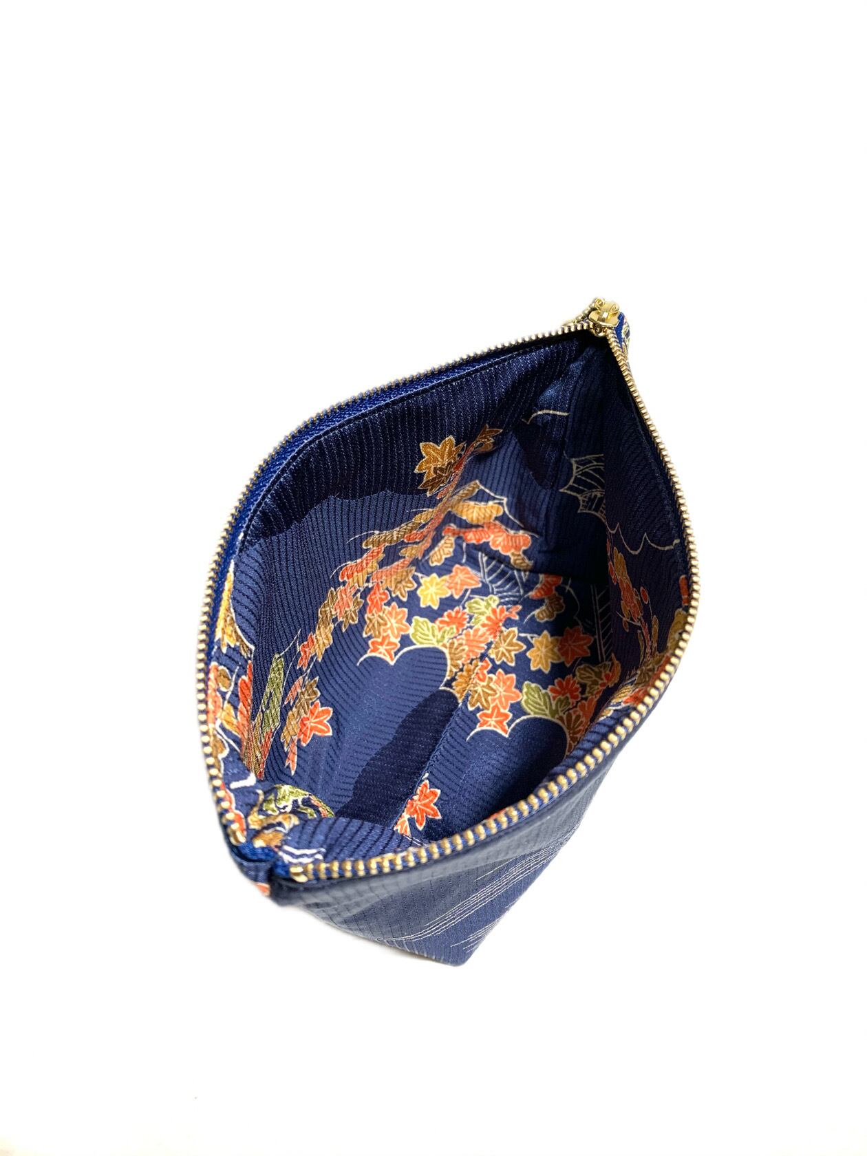 【現品1点限り‼︎】HAJIME AYUMU 高級和柄着物リメイクデザインポーチ ネイビー