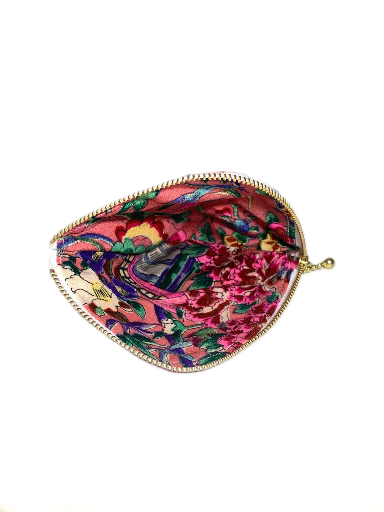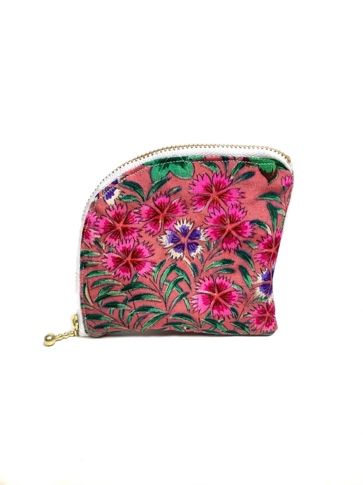 ◾️ 鮮やかな色合いの花柄と馬車の絵柄が組み合わさった高級和柄着物をリメイクしたデザインコインケースになります!