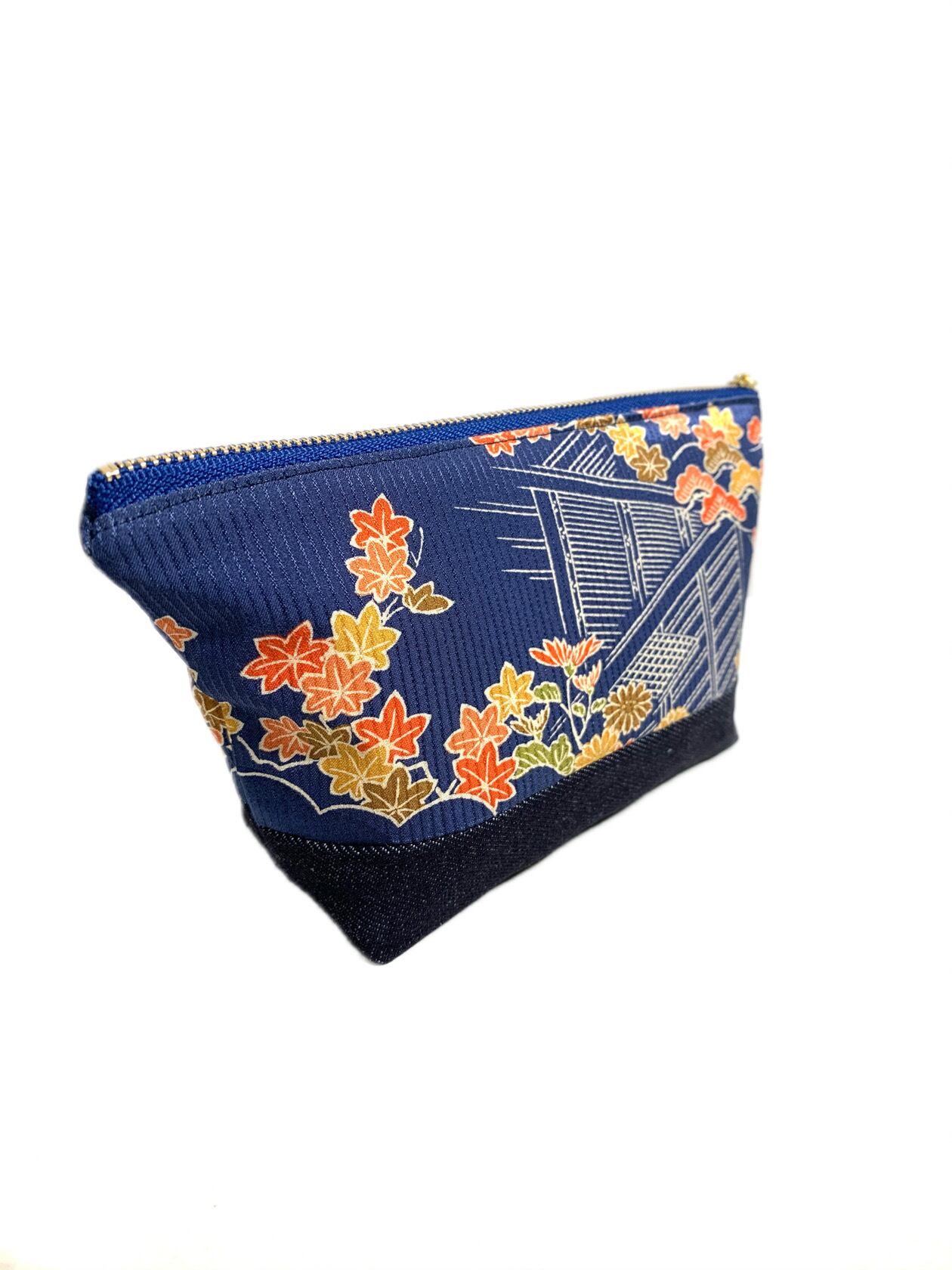 ◾️【現品1点限り‼︎】HAJIME AYUMU 高級和柄着物&岡山県産児島デニム リメイクデザインポーチ ブルー×ネイビー