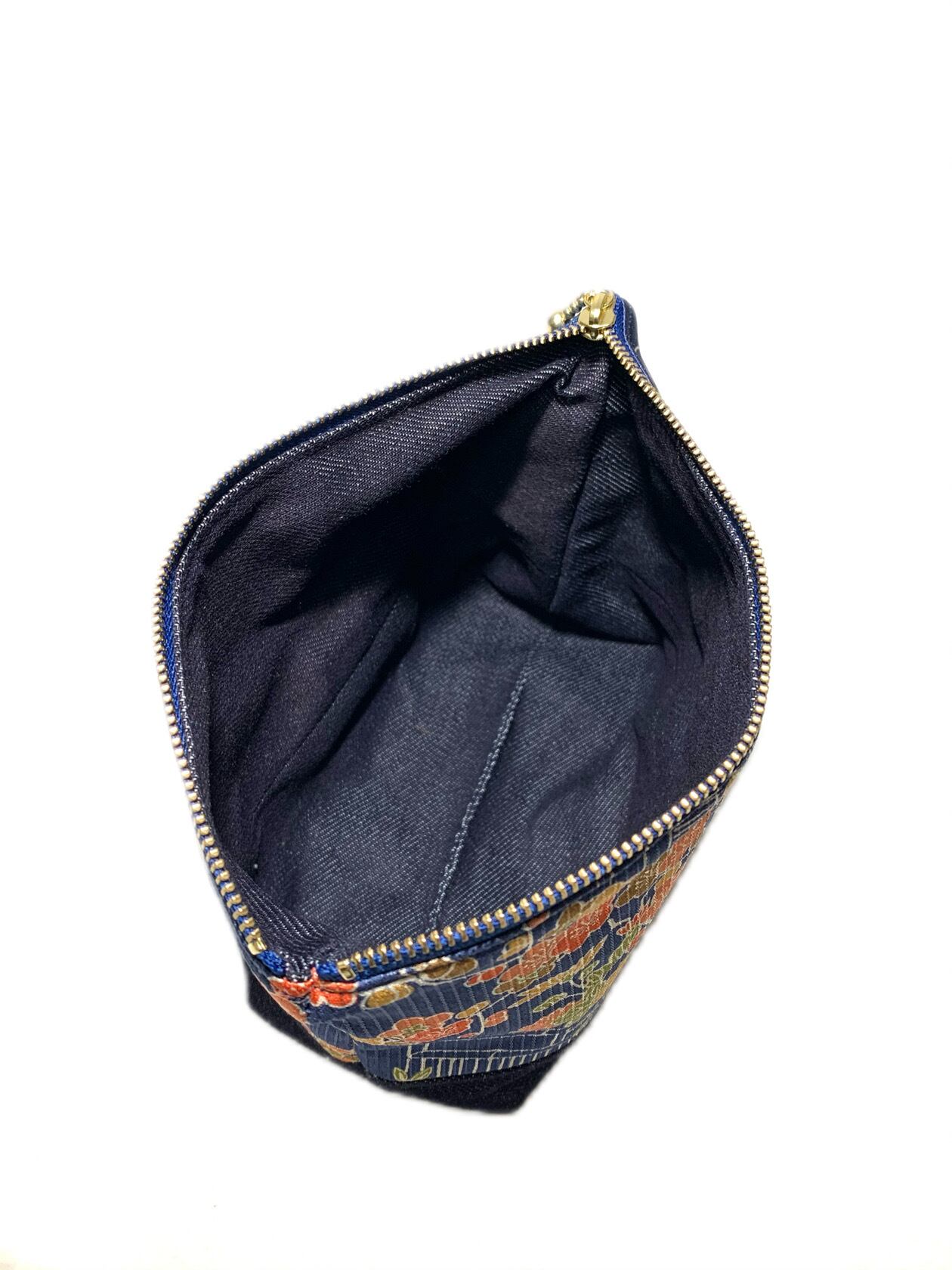 【現品1点限り‼︎】HAJIME AYUMU 高級和柄着物&岡山県産児島デニム リメイクデザインポーチ