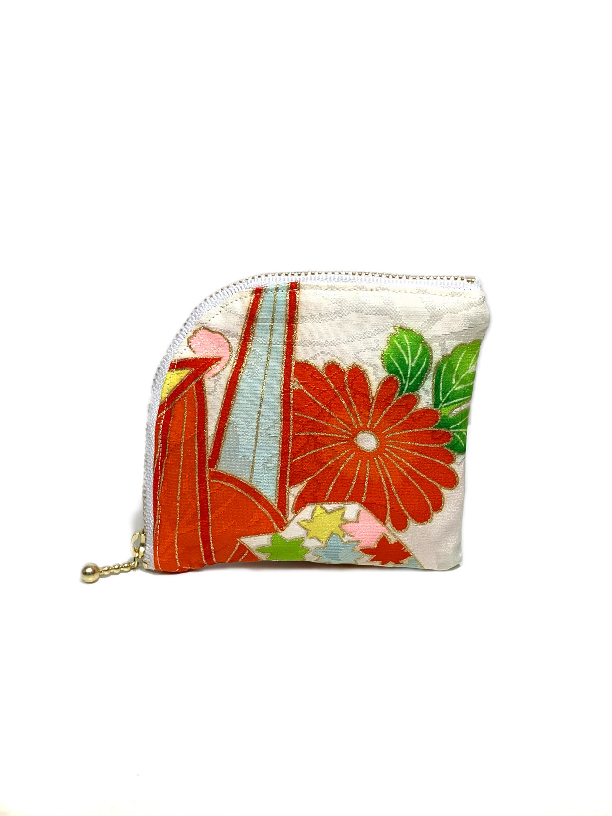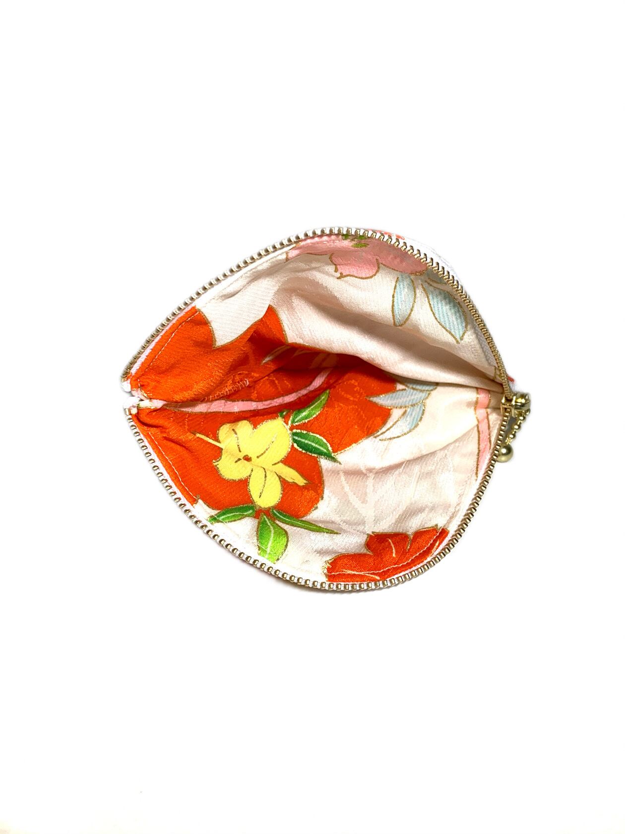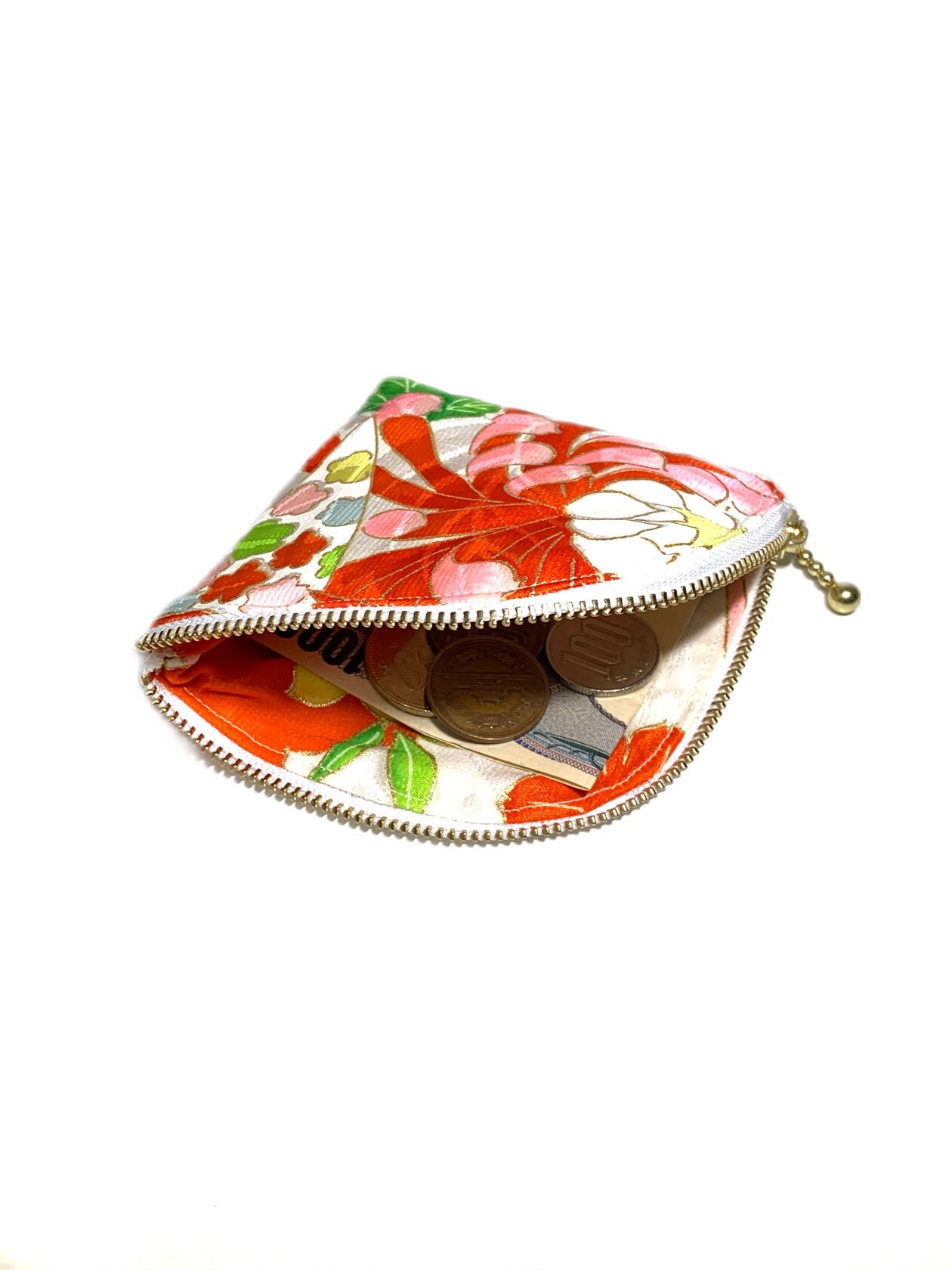 ◾️鮮やかな花柄に細かな金箔が付いた高級和柄着物をリメイクしたデザインコインケースになります!