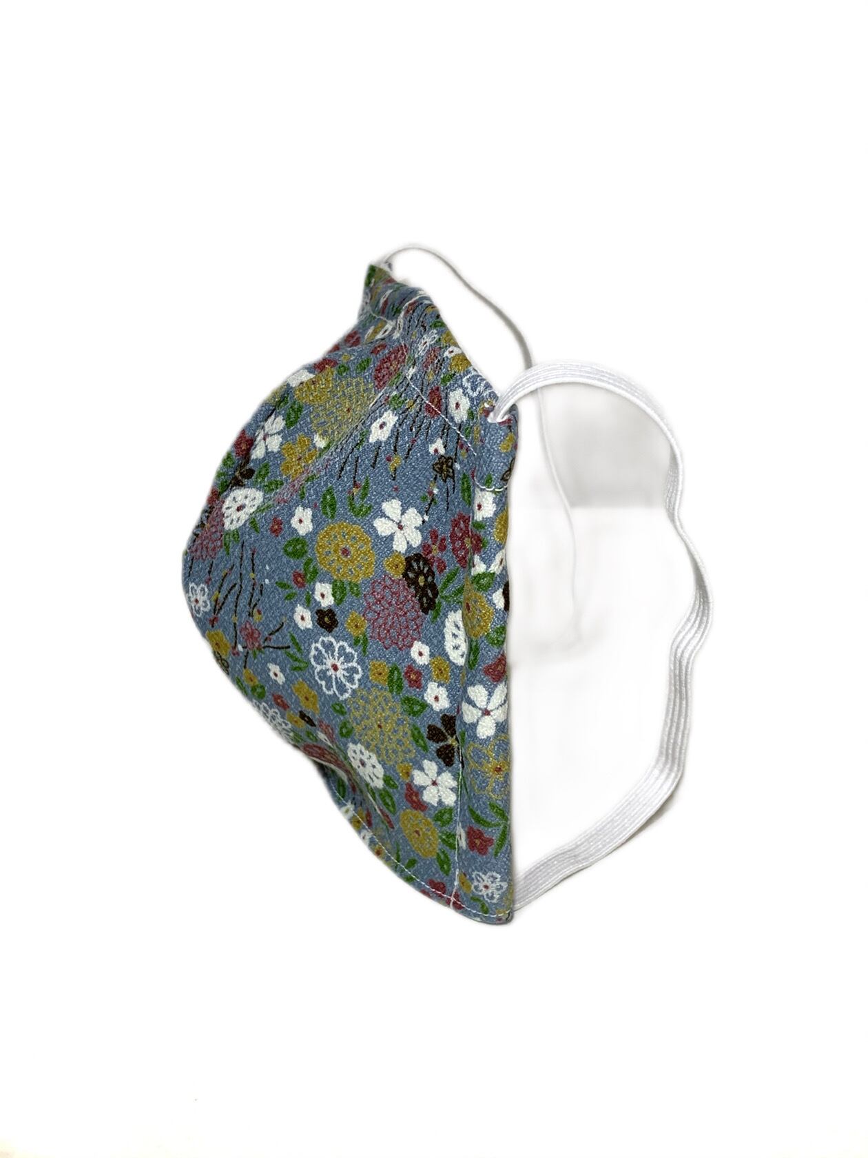 ◾️表は落ち着いた色合いと鮮やかな花柄の着物生地に使われる反物を惜しみなく使用、裏は高品質のダブルガーゼを使った立体型のデザインマスクになります。