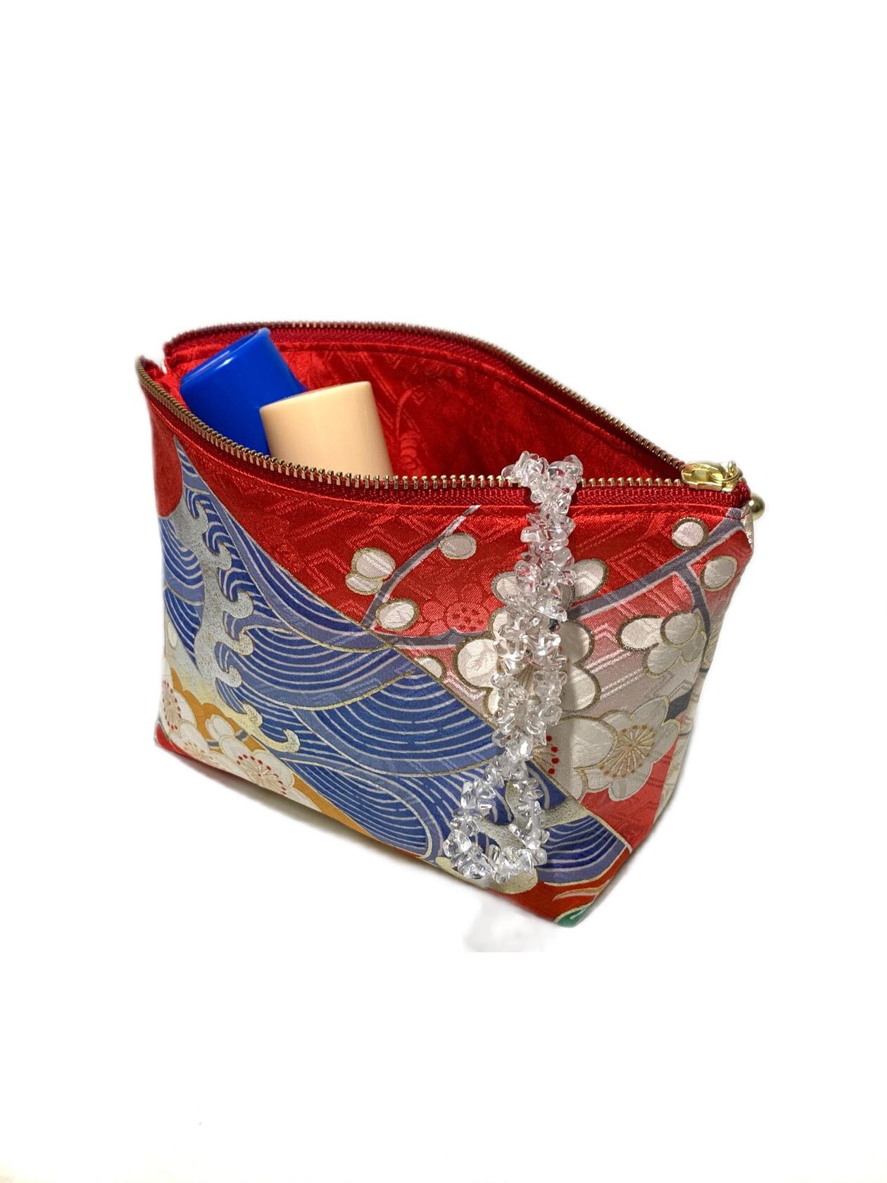 ◾️【現品1点限り‼︎】HAJIME AYUMU 高級和柄着物リメイクデザインポーチ 赤 花柄