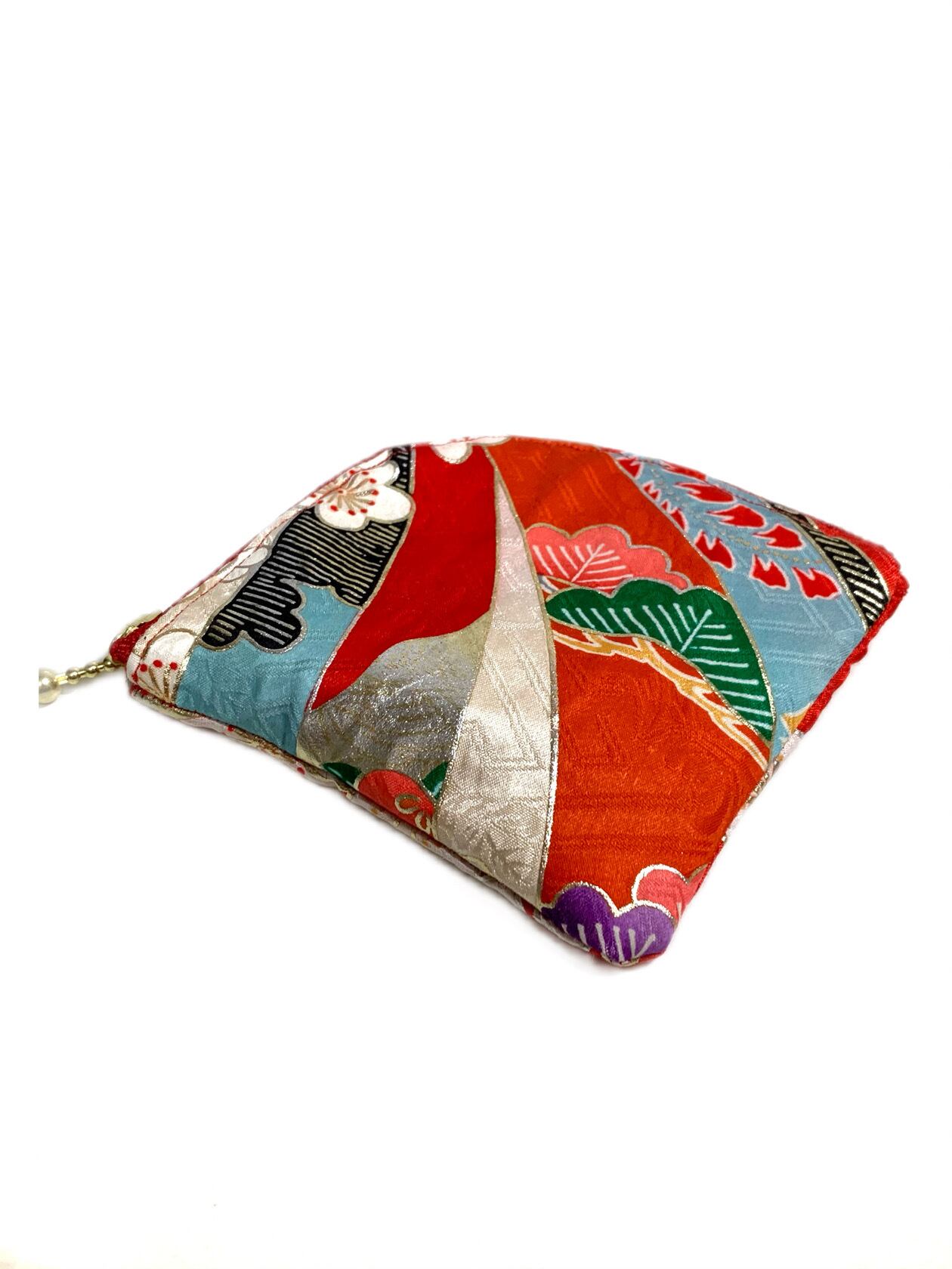 ◾️鮮やかな花柄デザインの高級和柄着物をリメイクしたデザインコインケースになります!