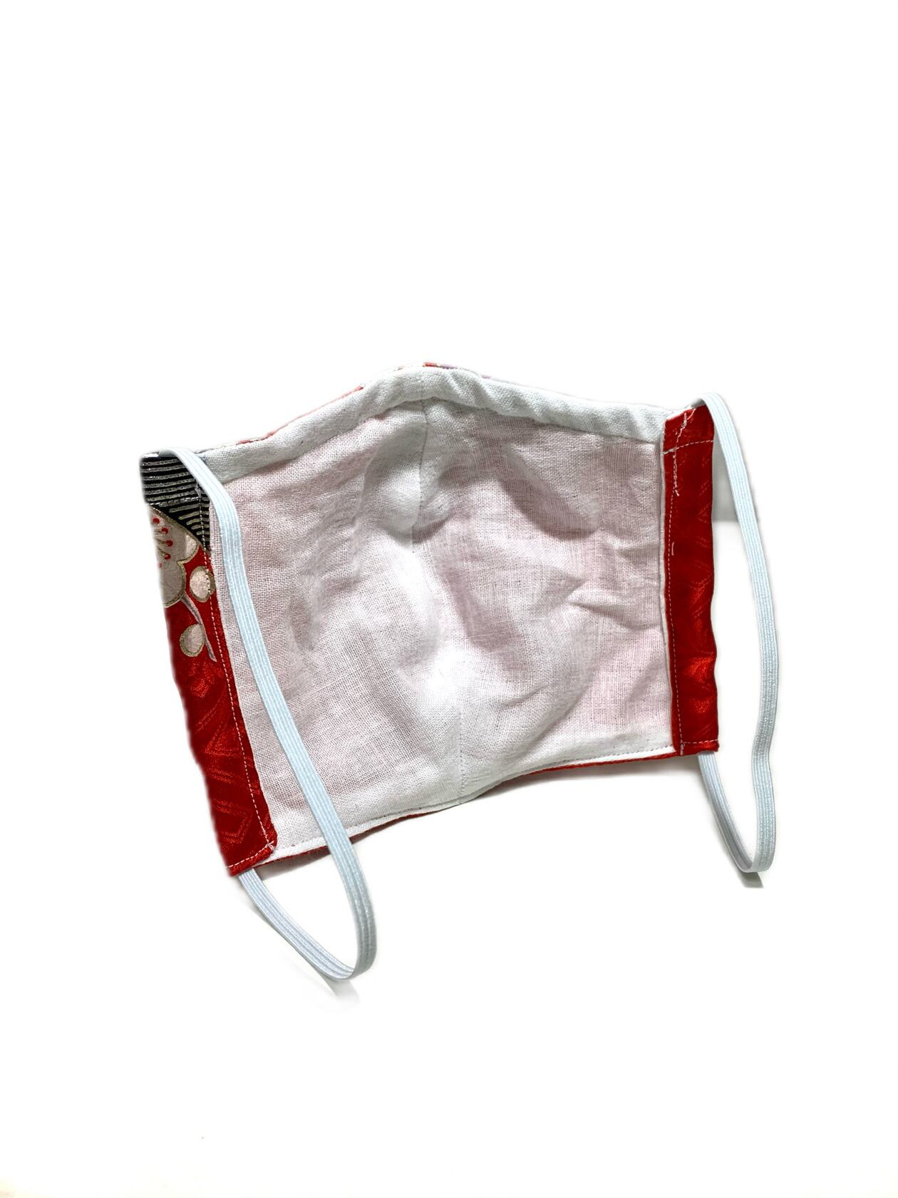 ◾️【現品1点のみ!!】HAJIME AYUMU 高級和柄付き着物&ダブルガーゼ デザイン立体マスク レッド ハンドメイド 和風 リメイク