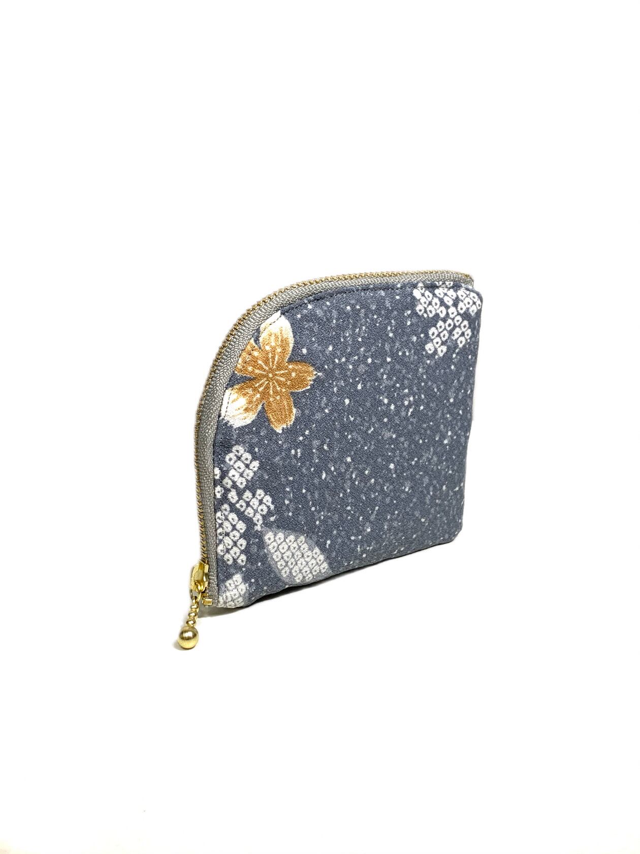 【現品1点限り‼︎】HAJIME AYUMU 高級和柄着物リメイクデザインL字財布 花柄 グレー