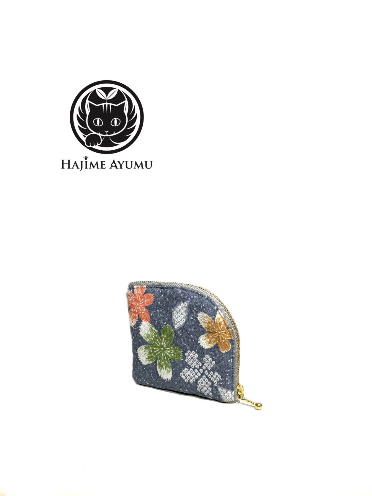◾️【現品1点限り‼︎】HAJIME AYUMU 高級和柄着物リメイクデザインL字財布 花柄 グレー