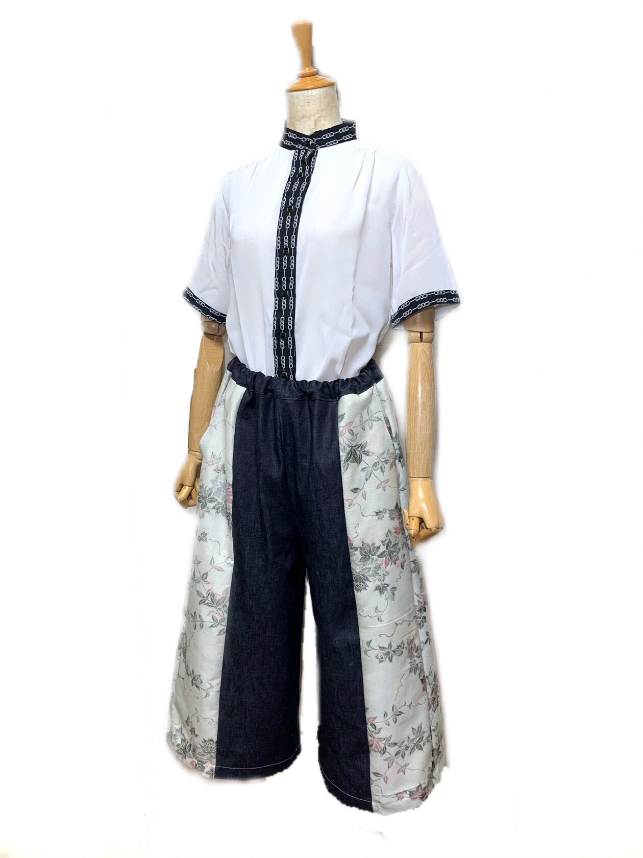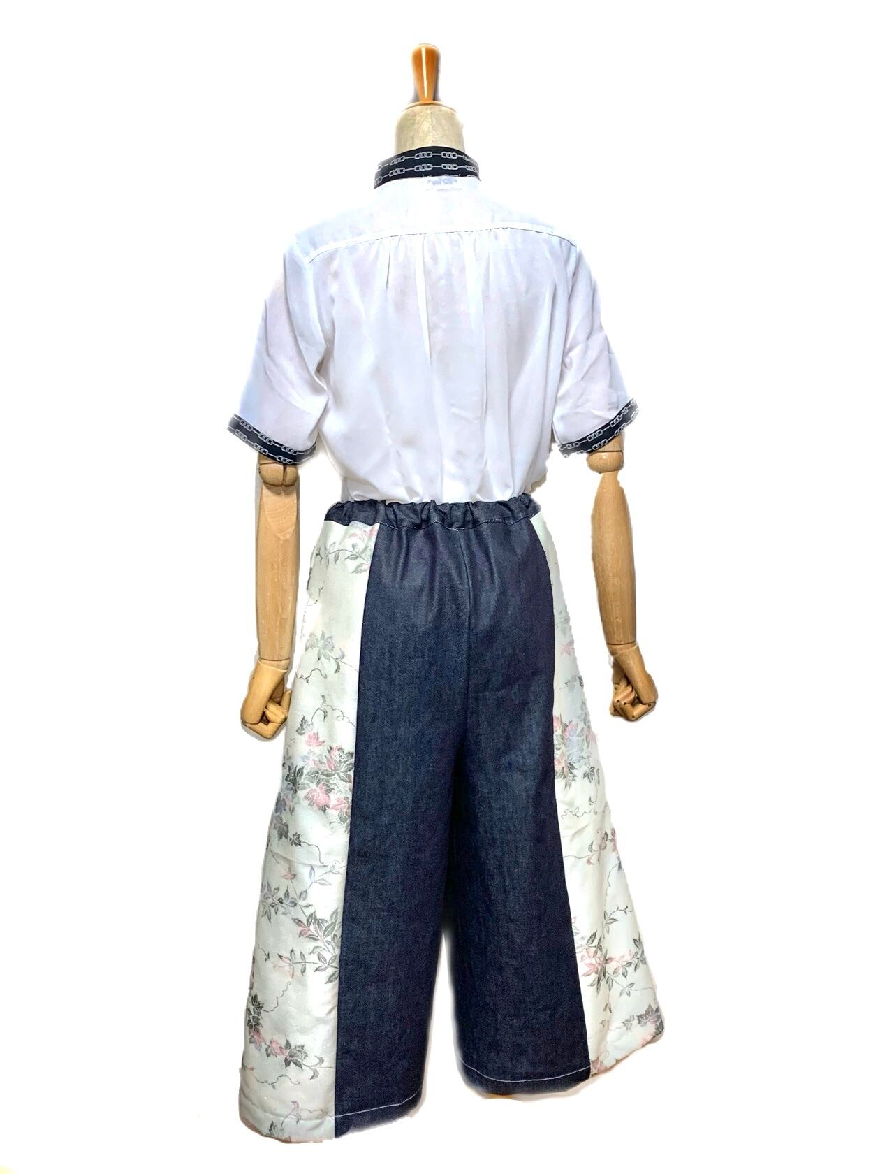 【現品1点限り‼︎】HAJIME AYUMU 高級和柄着物&岡山県産児島デニムリメイクデザインガウチョパンツ