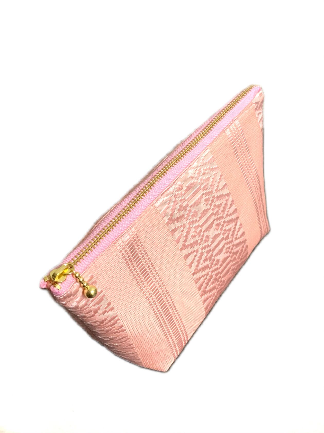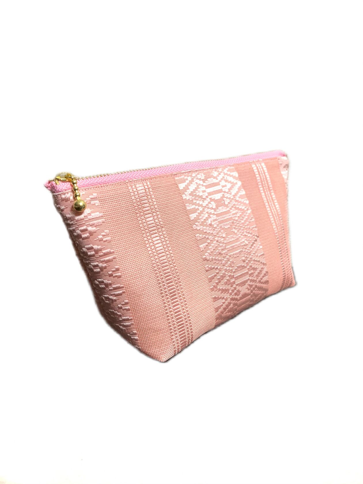 【現品1点のみ!!】HAJIME AYUMU 筑前博多織 高級和柄付き着物帯リメイクデザインポーチ ピンク