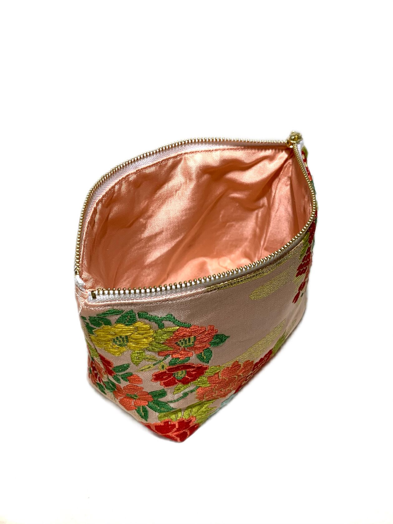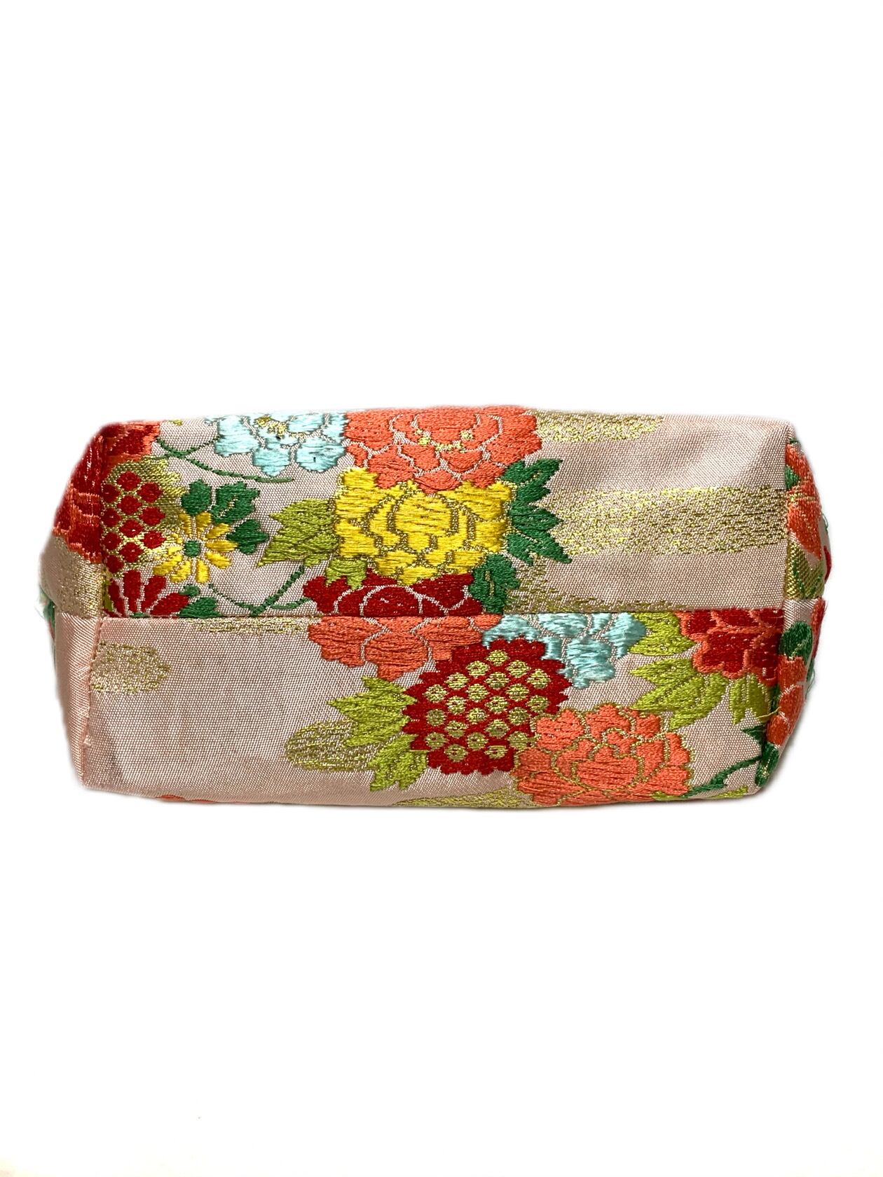 ◾️鮮やかな花柄の高級着物帯をリメイクしたデザインポーチになります♪
