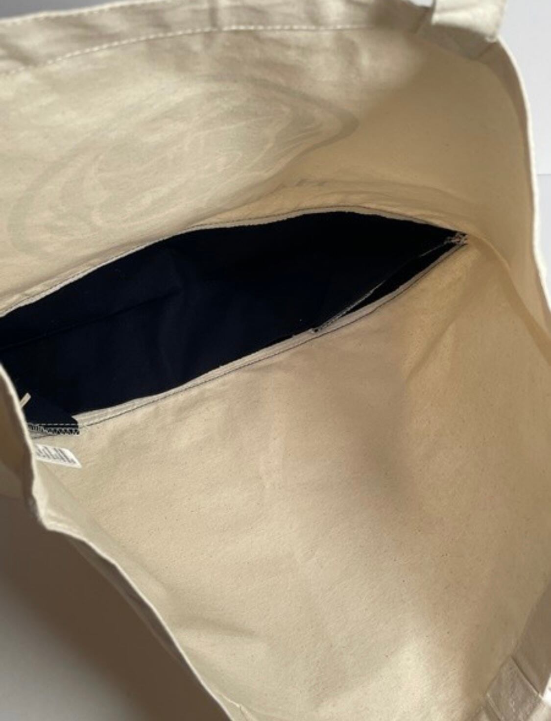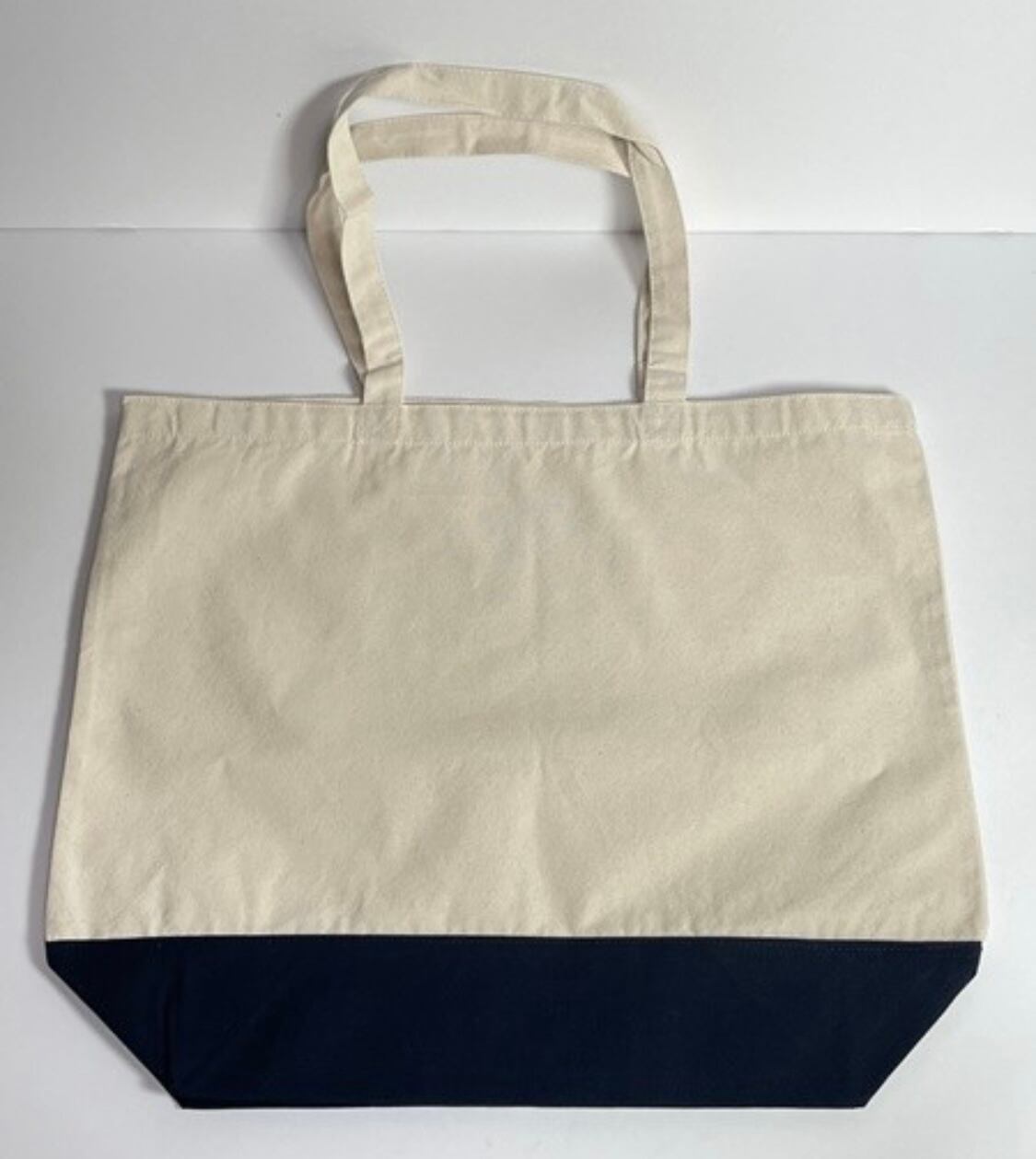 ★HAJIME AYUMU 綿100% トートバッグ エコバッグ Lサイズ 切り替え ナチュラル×ネイビー