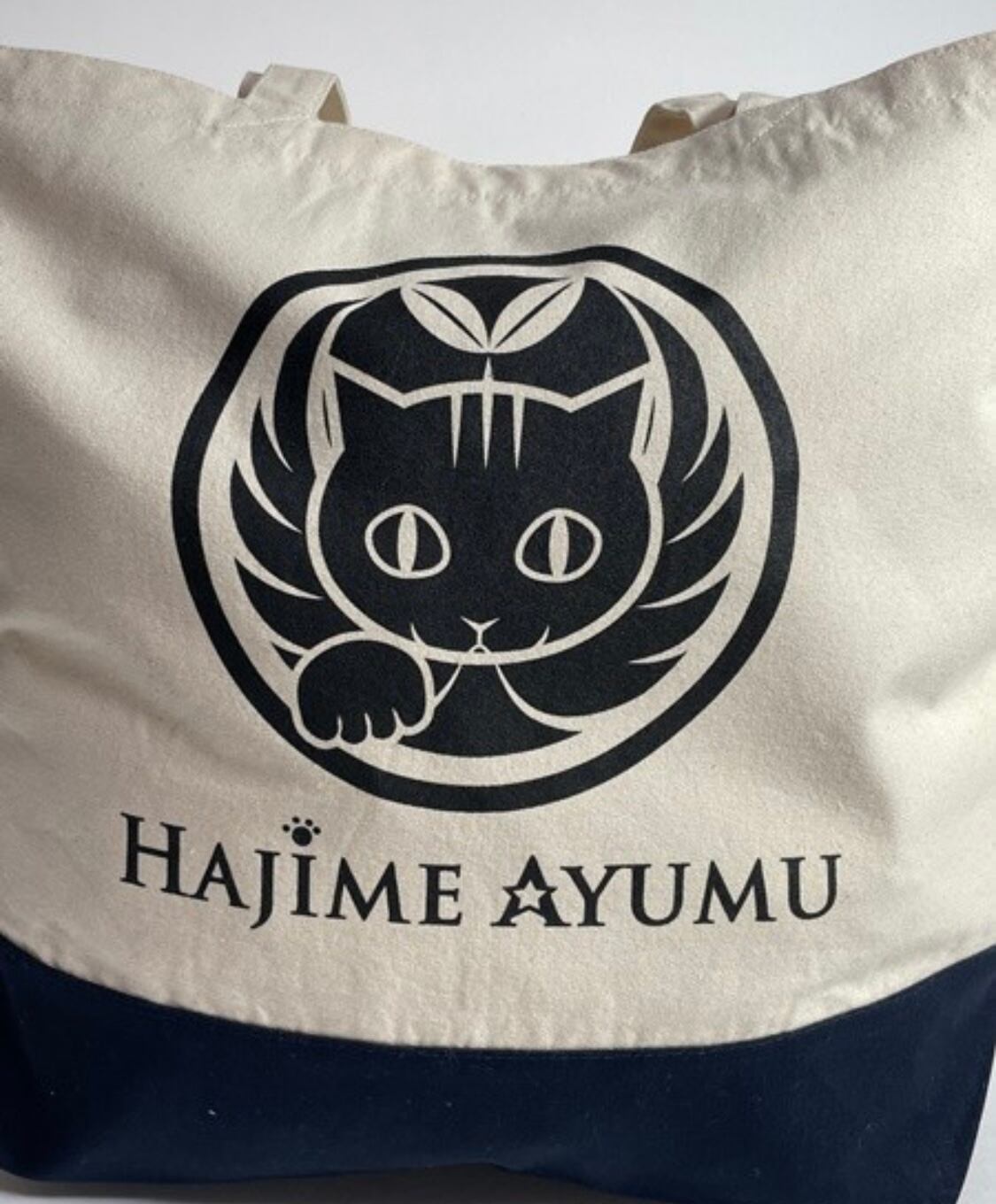 シンプルで使いやすいHAJIME AYUMU デザインロゴ付き 切り替えトートバッグです。
