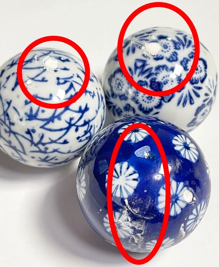 ・小さな白い欠けの様なものがございますが製作上でできるものですので不良ではございません。
