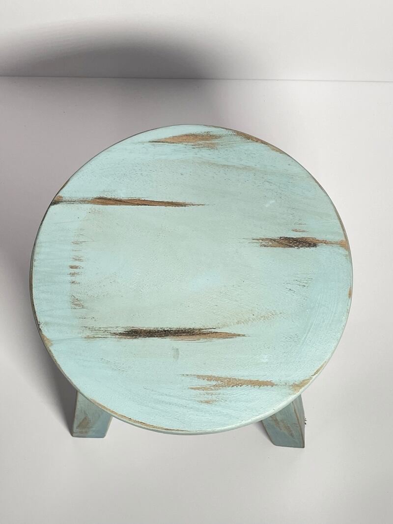 ◾️️★新品 木製 スツール アンティーク ブルー ラウンドスツール 椅子 イス ミニ チェア 花台 サイドテーブル 飾り台 置物 飾り Th012611